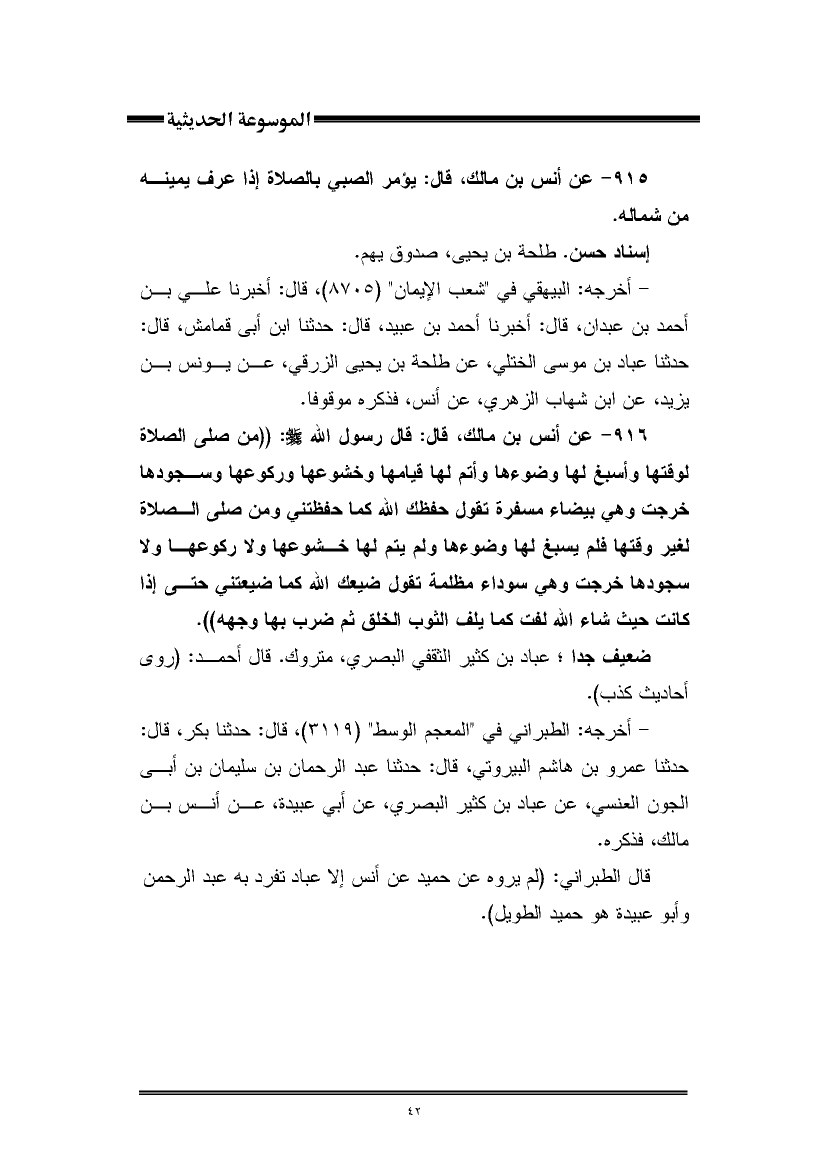 ٩١٥ - عن أنس بن مالك، قال: يؤمر الصبي بالصلاة إذا عرف يمينه من شماله.