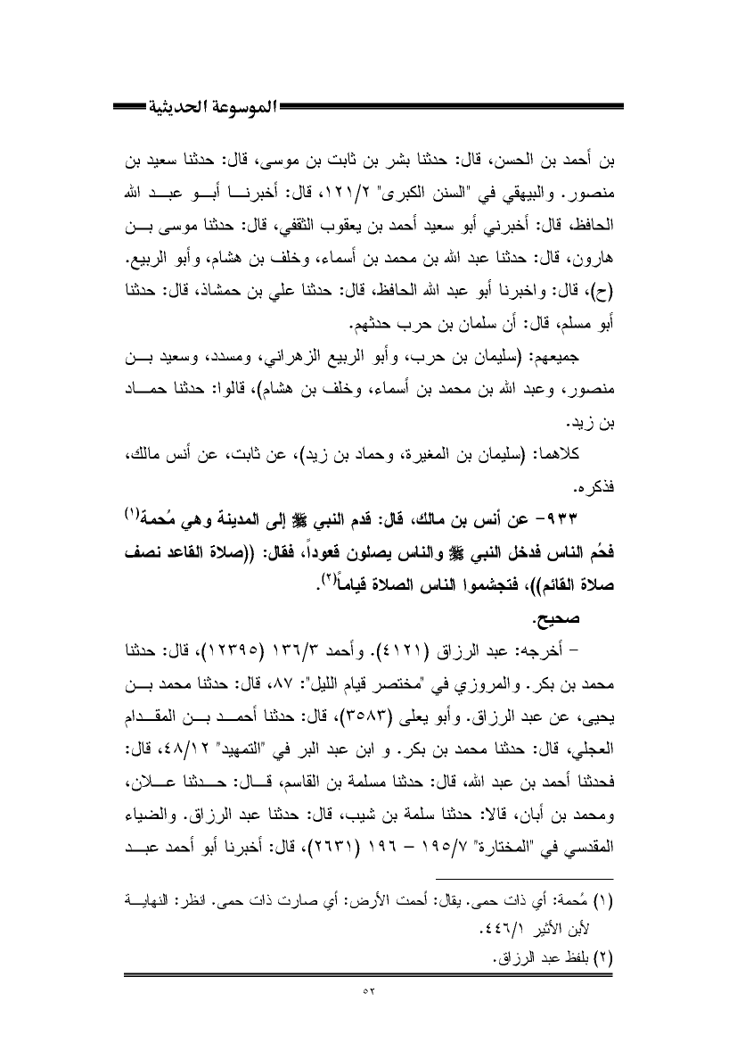 بن أحمد بن الحسن، قال: حدثنا بشر بن ثابت بن موسى، قال: حدثنا سعيد بن منصور. والبيهقي في "السنن الكبرى" ٢/ ١٢١، قال: أخبرنا أبو عبد اللَّه الحافظ، قال: أخبرني أبو سعيد أحمد بن يعقوب الثقفي، قال: حدثنا موسى بن هارون، قال: حدثنا عبد اللَّه بن محمد بن أسماء، وخلف بن هشام، وأبو الربيع. (ح)، قال: وأخبرنا أبو عبد اللَّه الحافظ، قال: حدثنا علي بن حمشاذ، قال: حدثنا أبو مسلم، قال: أن سلمان بن حرب حدثهم.