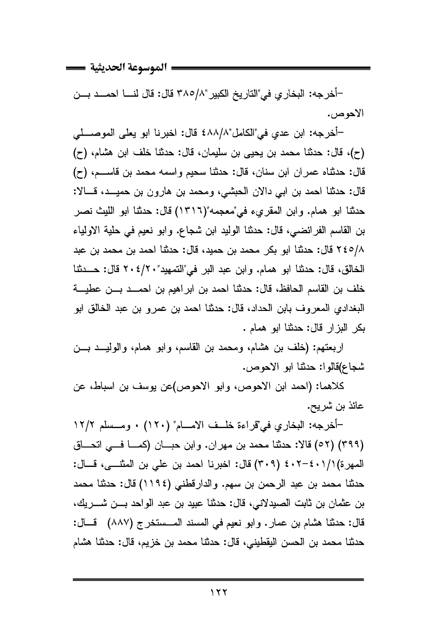 أربعتهم: (خلف بن هشام، ومحمد بن القاسم، وأبو همام، والوليد بن شجاع) قالوا: حدثنا أبو الأحوص.