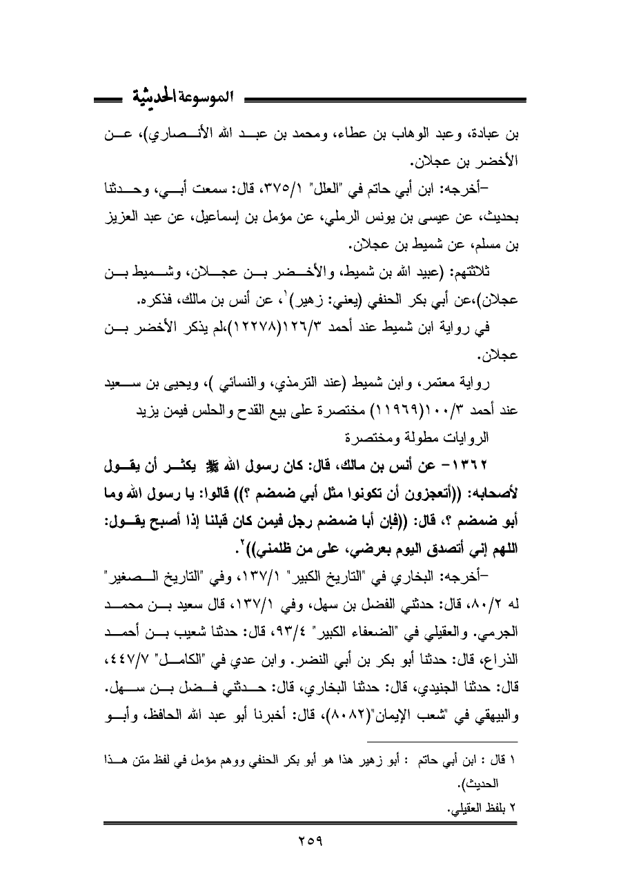 ثلاثتهم: (عبيد اللّه بن شميط، والأخضر بن عجلان، وشميط بن عجلان)، عن أبي بكر الحنفي (يعني: زهير) (¬١)، عن أنس بن مالك، فذكره.