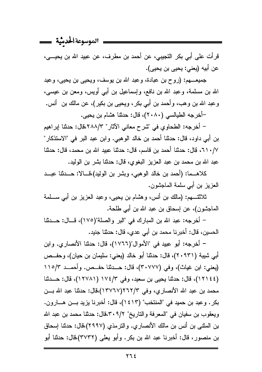 ثلاتتهم: (مالك بن أنس، وهشام بن يحيى، وعبد العزيز بن أبي سلمة الماجشون)، عن إسحاق بن عبد اللّه بن أبي طلحة.