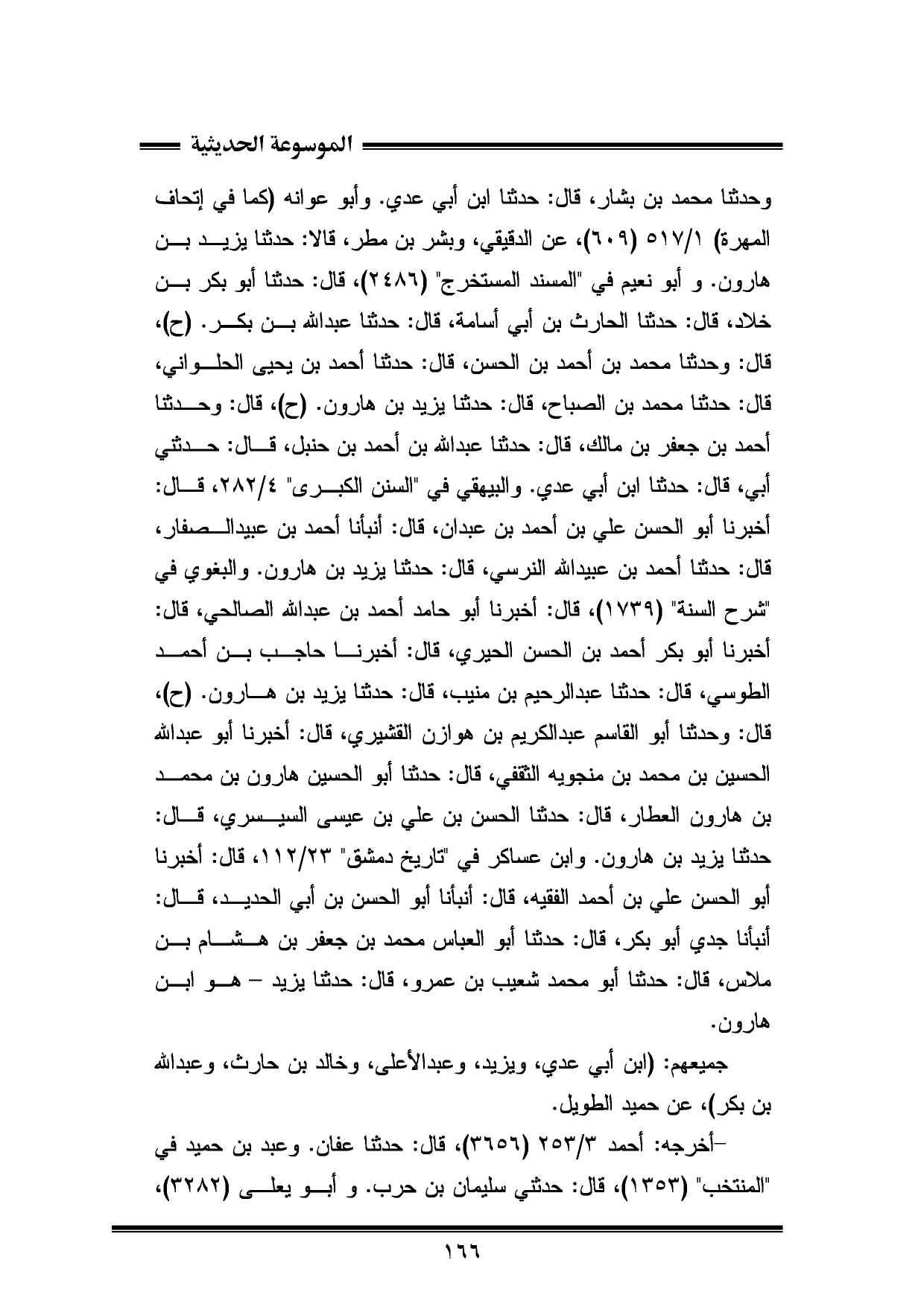 وحدثنا محمد بن بشار، قال: حدثنا ابن أبي عدي. وأبو عوانه (كما في إتحاف المهرة) ١/ ٥١٧ (٦٠٩)، عن الدقيقي، وبشر بن مطر، قالا: حدثنا يزيد بن هارون. وأبو نعيم في "المسند المستخرج" (٢٤٨٦)، قال: حدثنا أبو بكر بن خلاد، قال: حدثنا الحارث بن أبي أسامة، قال: حدثنا عبد الله بن بكر. (ح)، قال: وحدثنا محمد بن أحمد بن الحسن، قال: حدثنا أحمد بن يحيى الحلواني، قال: حدثنا محمد بن الصباح، قال: حدثنا يزيد بن هارون. (ح)، قال: وحدثنا أحمد بن جعفر بن مالك، قال: حدثنا عبد الله بن أحمد بن حنبل، قال: حدثني أبي، قال: حدثنا ابن أبي عدي. والبيهقي في "السنن الكبرى" ٤/ ٢٨٢، قال: أخبرنا أبو الحسن علي بن أحمد بن عبدان، قال: أنبأنا أحمد بن عبيد الصفار، قال: حدثنا أحمد بن عبيد الله النرسي، قال: حدثنا يزيد بن هارون. والبغوى في "شرح السنة" (١٧٣٩)، قال: أخبرنا أبو حامد أحمد بن عبد الله الصالحي، قال: أخبرنا أبو بكر أحمد بن الحسن الحيري، قال: أخبرنا حاجب بن أحمد الطوسي، قال: حدثنا عبد الرحيم بن منيب، قال: حدثنا يزيد بن هارون. (ح)، قال: وحدثنا أبو القاسم عبد الكريم بن هوازن القشيري، قال: أخبرنا أبو عبد الله الحسين بن محمد بن منجويه الثقفي، قال: حدثنا أبو الحسين هارون بن محمد بن هارون العطار، قال: حدثنا الحسن بن علي بن عيسى السيسري، قال: حدثنا يزيد بن هارون. وابن عساكر في "تاريخ دمشق" ٢٣/ ١١٢، قال: أخبرنا أبو الحسن علي بن أحمد الفقيه، قال: أنبأنا أبو الحسن بن أبي الحديد، قال: أنبأنا جدي أبو بكر، قال: حدثنا أبو العباس محمد بن جعفر بن هشام بن ملاس، قال: حدثنا أبو محمد شعيب بن عمرو، قال: حدثنا يزيد - هو ابن هارون.