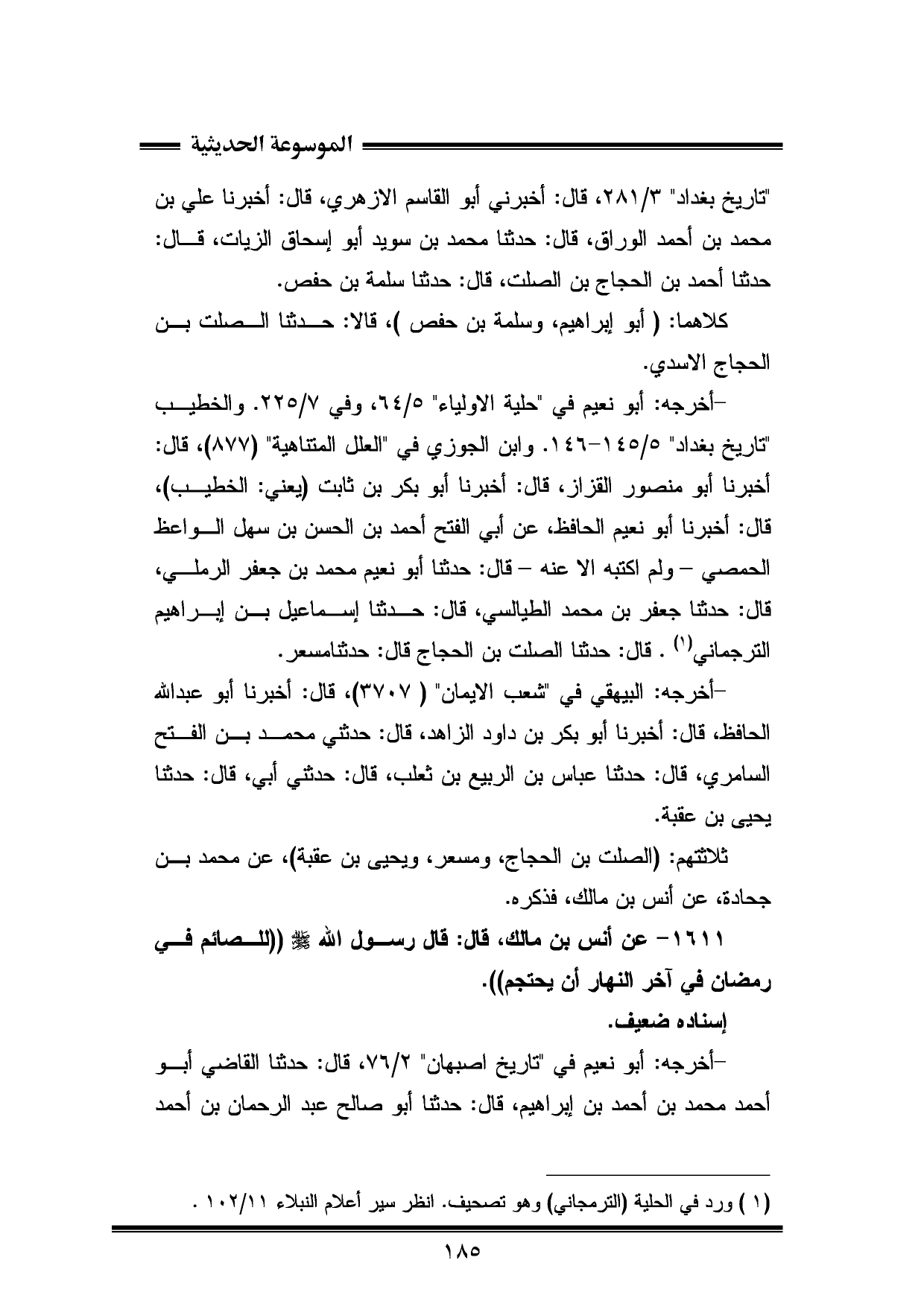 كتاب الموسوعة الحديثية - ديوان الوقف السني (اسم الجزء: 11)