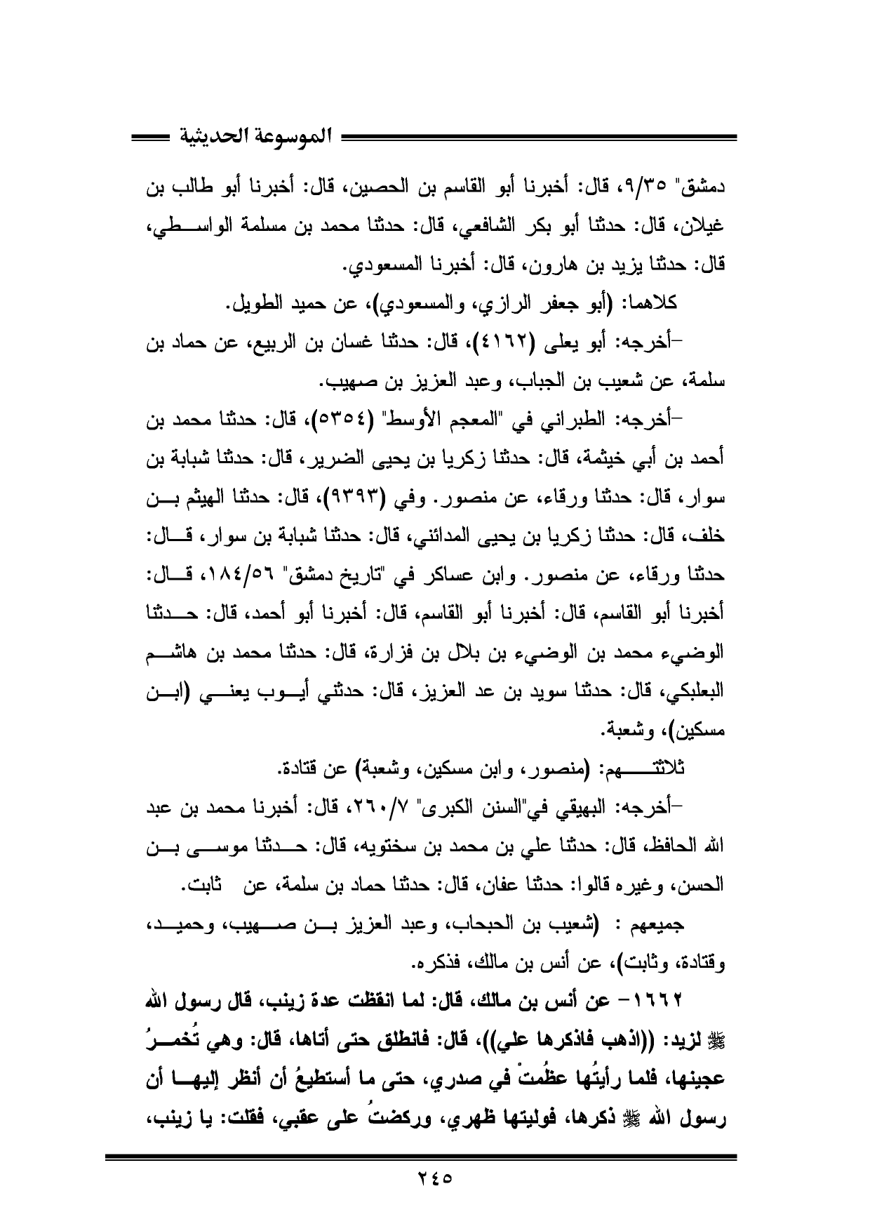 - أخرجه: أبو يعلى (٤١٦٢)، قال: حدثنا غسان بن الربيع، عن حماد بن سلمة، عن شعيب بن الجباب، وعبد العزيز بن صهيب.