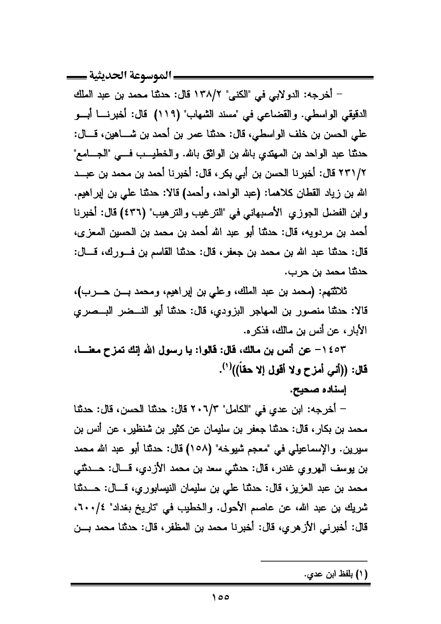 (¬١) بلفظ ابن عدي.