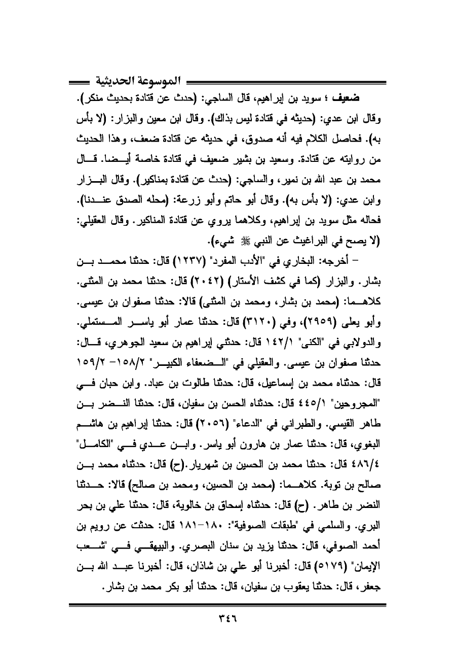 كلاهما: (سويد بن إبراهيم، وسعيد بن بشير) عن قتادة، عن أنس بن مالك، فذكره.