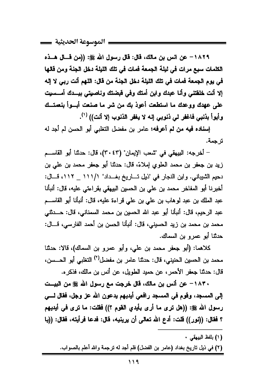(¬٢) في ذيل تاريخ بغداد (عامر بن الفضل) فلم أجد له ترجمة والله أعلم بالصواب.