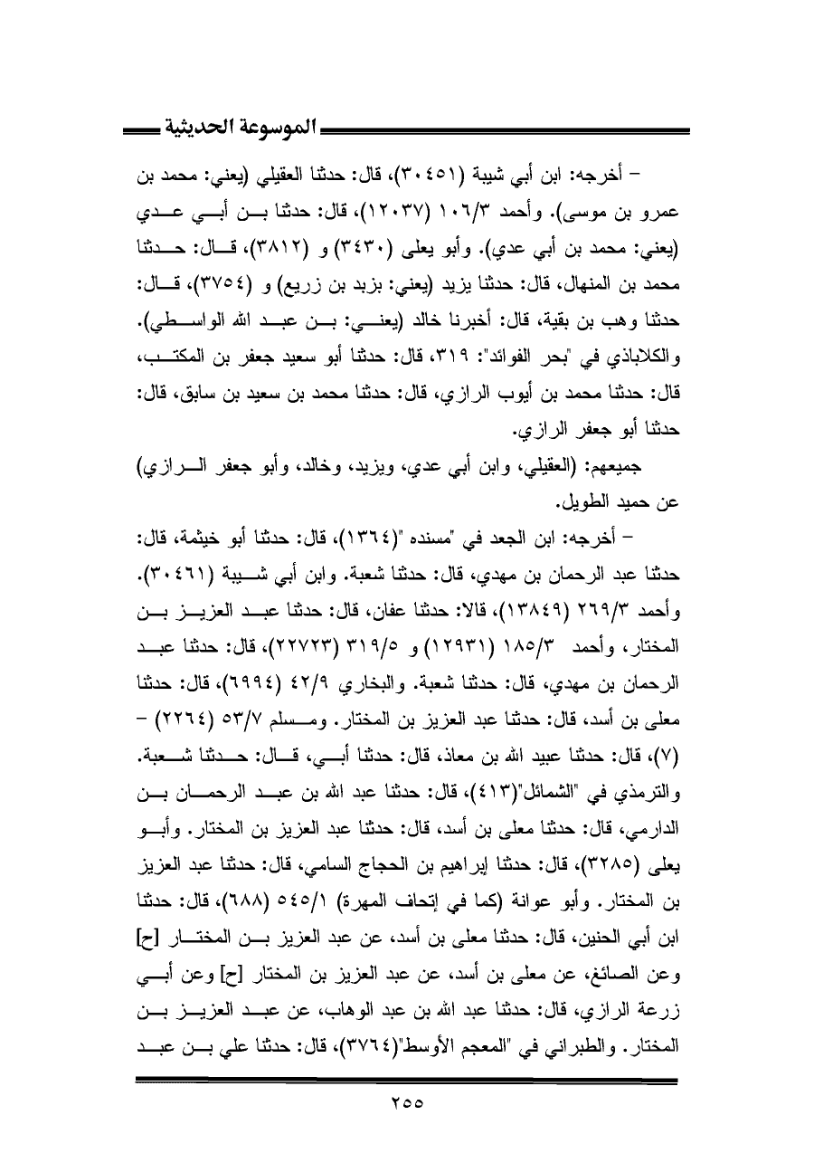 جميعهم: (العقيلي، وابن أبي عدي، ويزيد، وخالد، وأبو جعفر الرازي) عن حميد الطويل.