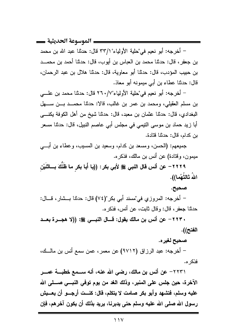 - أخرجه: أبو نعيم في "حلية الأولياء" ١/ ٣٣ قال: حدثنا عبد الله بن محمد بن جعفر، قال: حدثنا محمد بن العباس بن أيوب، قال: حدثنا أحمد بن محمد بن حبيب المؤدب، قال: حدثنا أبو معاوية، قال: حدثنا هلال بن عبد الرحمان، قال: حدثنا عطاء بن أبي ميمونه أبو معاذ.