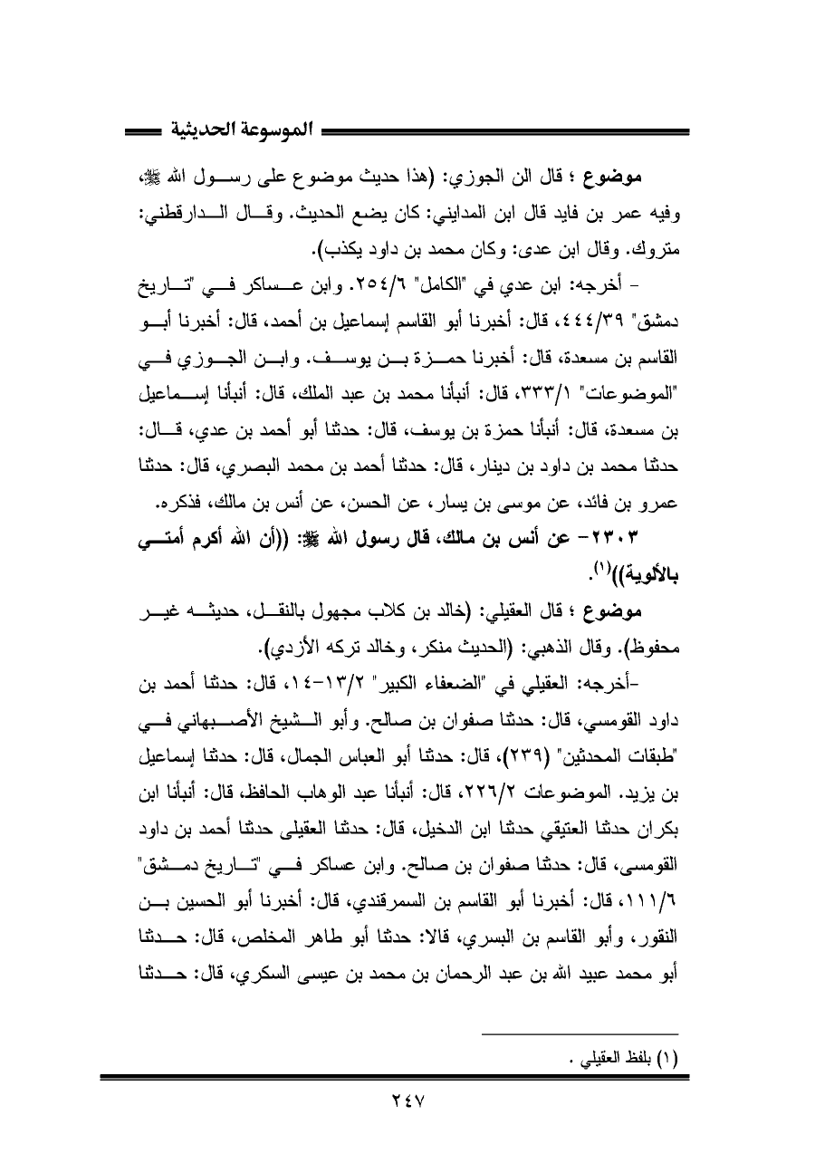 (¬١) بلفظ العقيلي.