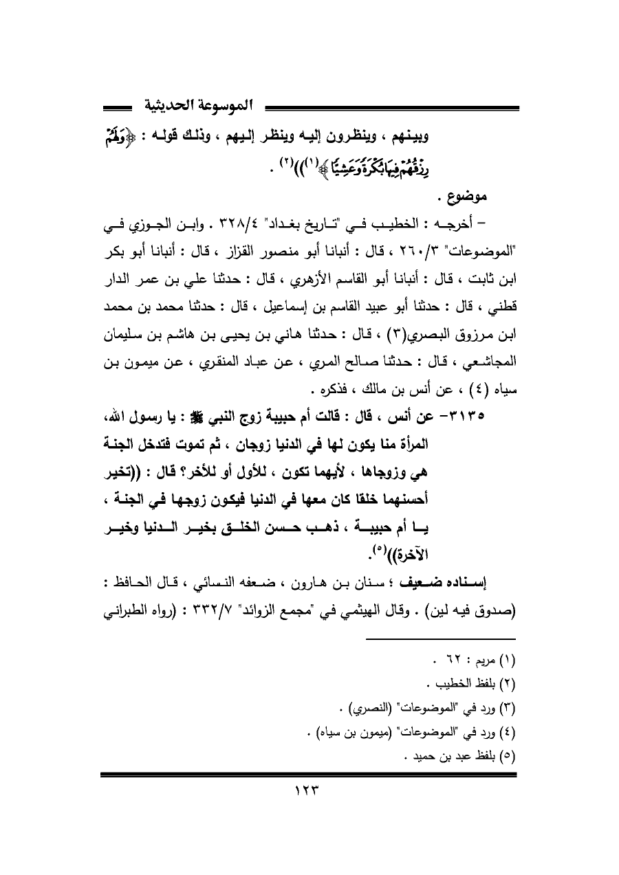 (¬٤) ورد في "الموضوعات" (ميمون بن سياه).