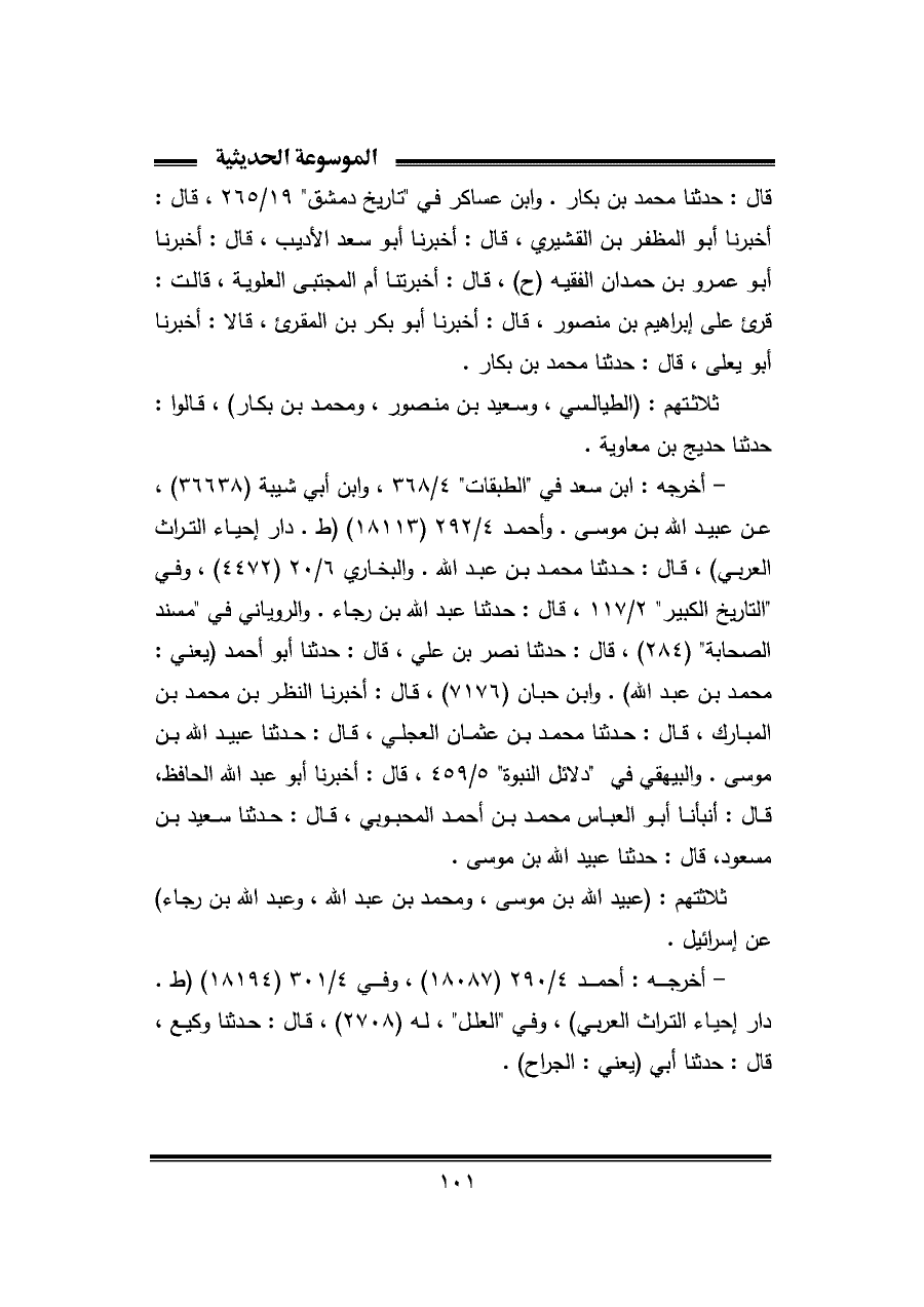 كتاب الموسوعة الحديثية - ديوان الوقف السني (اسم الجزء: 27)
