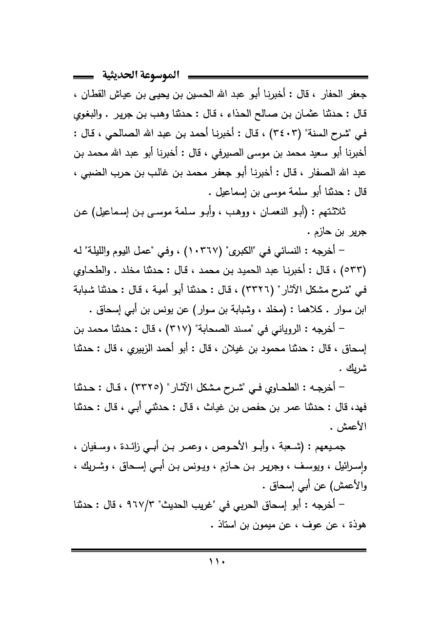 ثلاثتهم: (أبو النعمان، ووهب، وأبو سلمة موسى بن إسماعيل) عن جرير بن حازم.