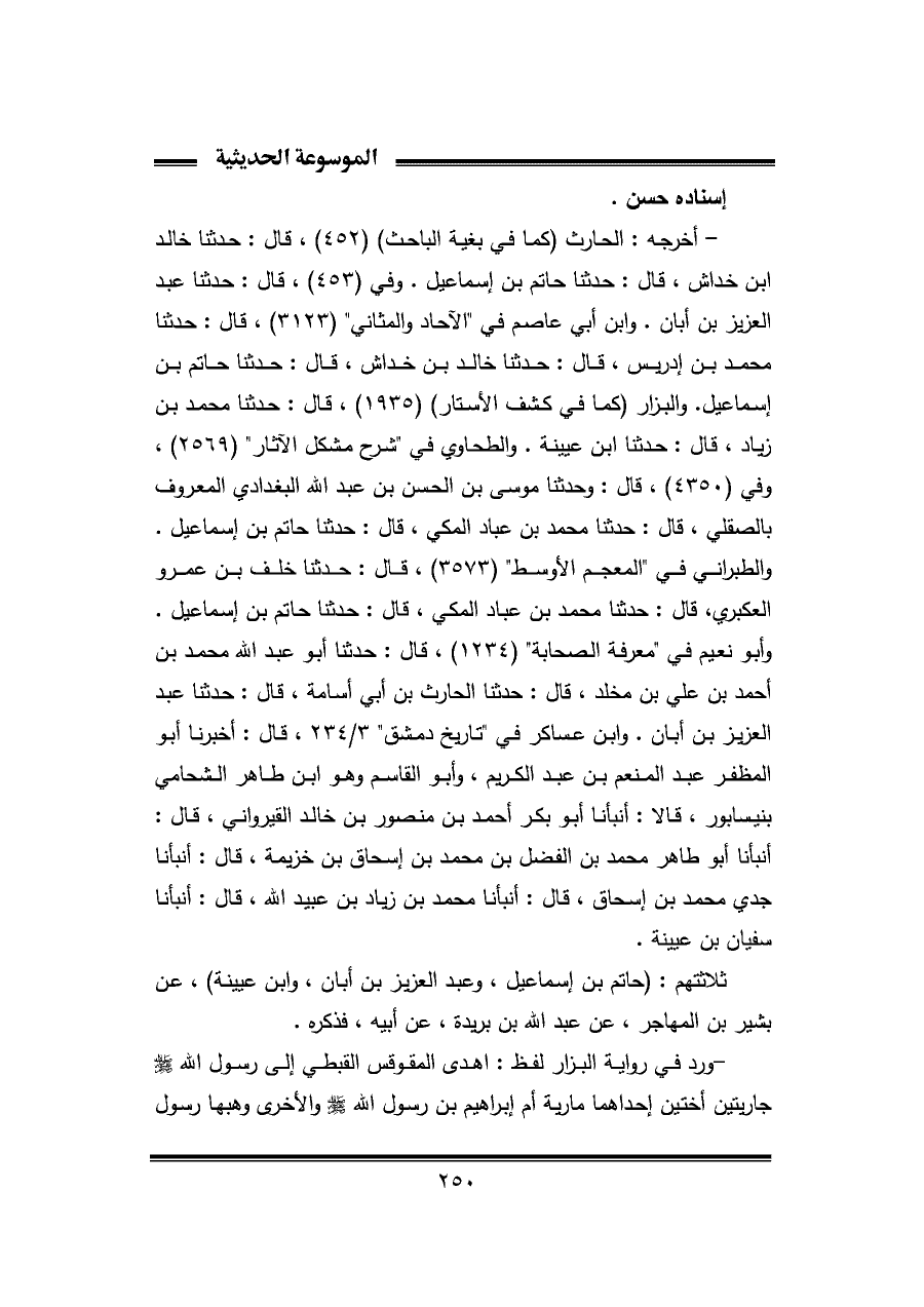 - ورد في رواية البزار لفظ: أهدى المقوقس القبطي إلى رسول الله - صلى الله عليه وسلم - جاريتين أختين إحداهما مارية أم إبراهيم بن رسول الله - صلى الله عليه وسلم - والأخرى وهبها رسول