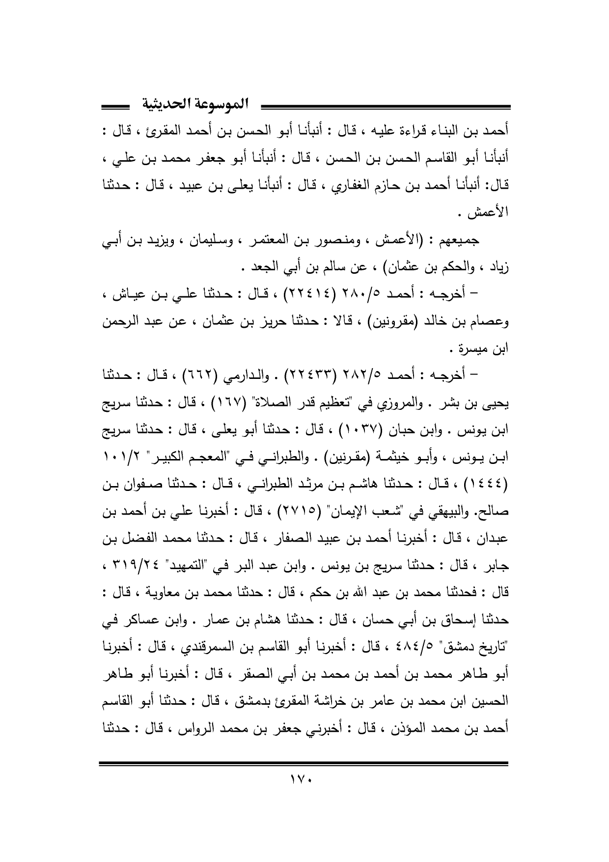 كتاب الموسوعة الحديثية - ديوان الوقف السني (اسم الجزء: 32)