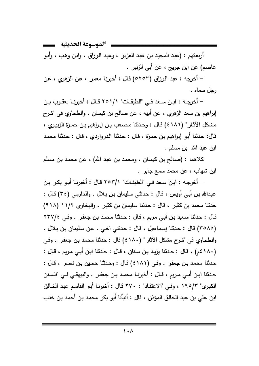 أربعتهم: (عبد المجيد بن عبد العزيز، وعبد الرزاق، وابن وهب، وأبو عاصم) عن ابن جريج، عن أبي الزبير.
