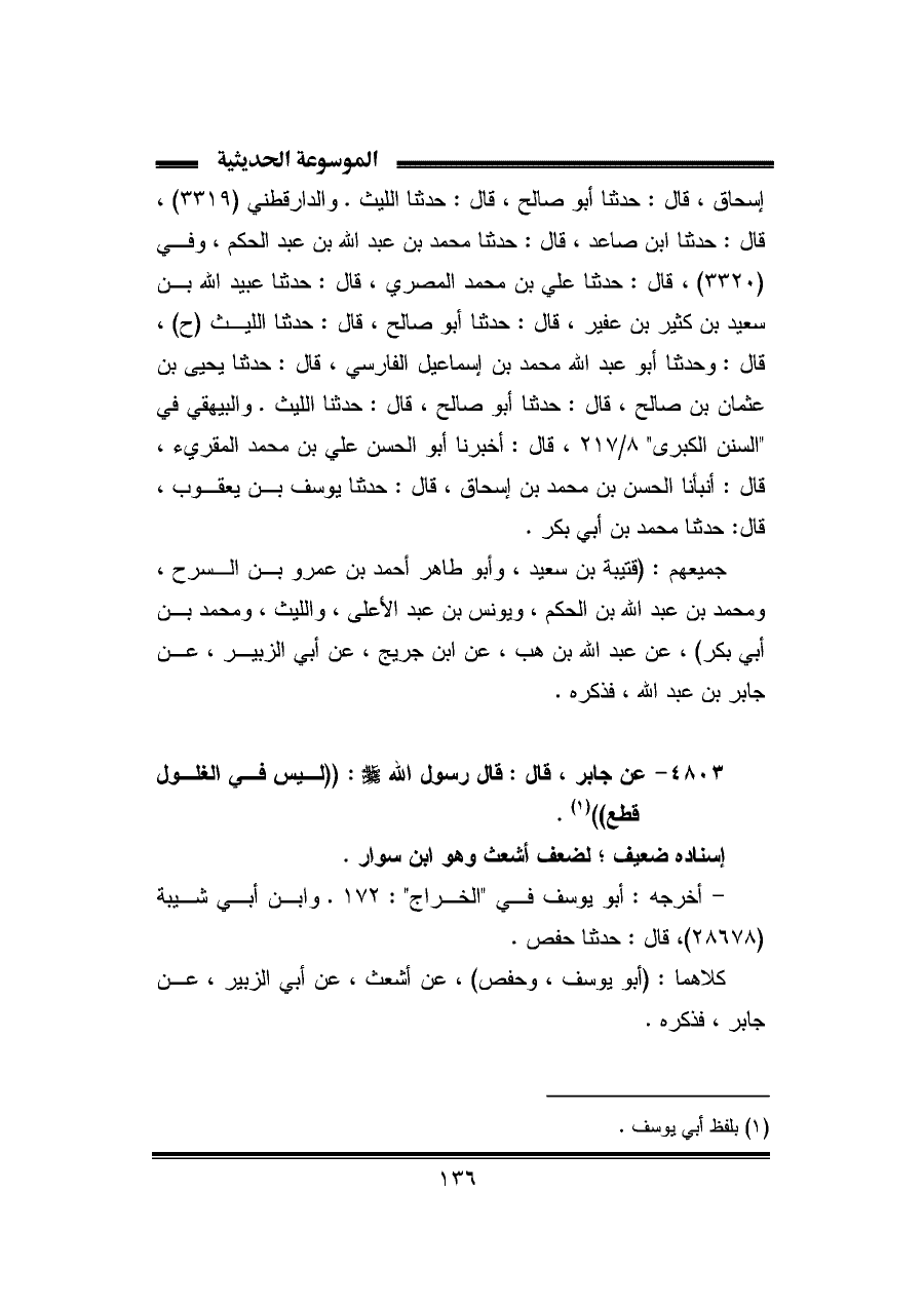 كتاب الموسوعة الحديثية - ديوان الوقف السني (اسم الجزء: 39)