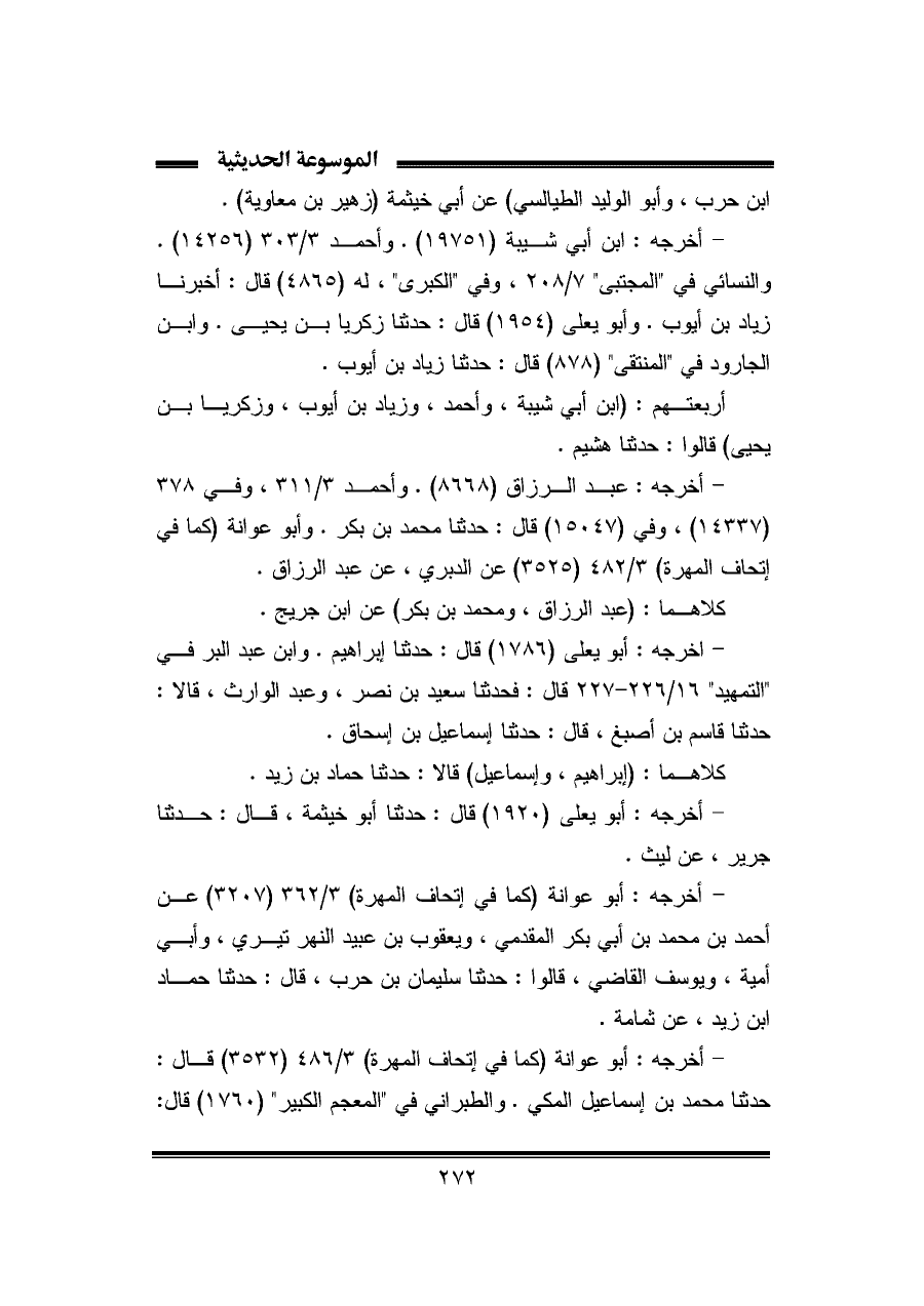 ابن حرب، وأبو الوليد الطيالسي) عن أبي خيثمة (زهير بن معاوية).