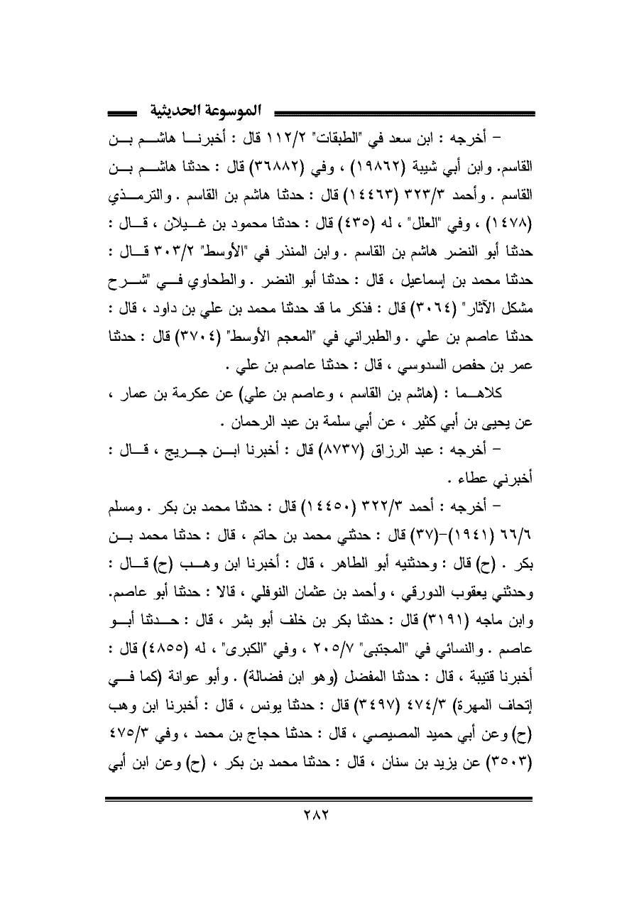 كلاهما: (هاشم بن القاسم، وعاصم بن علي) عن عكرمة بن عمار، عن يحيى بن أبي كثير، عن أبي سلمة بن عبد الرحمان.