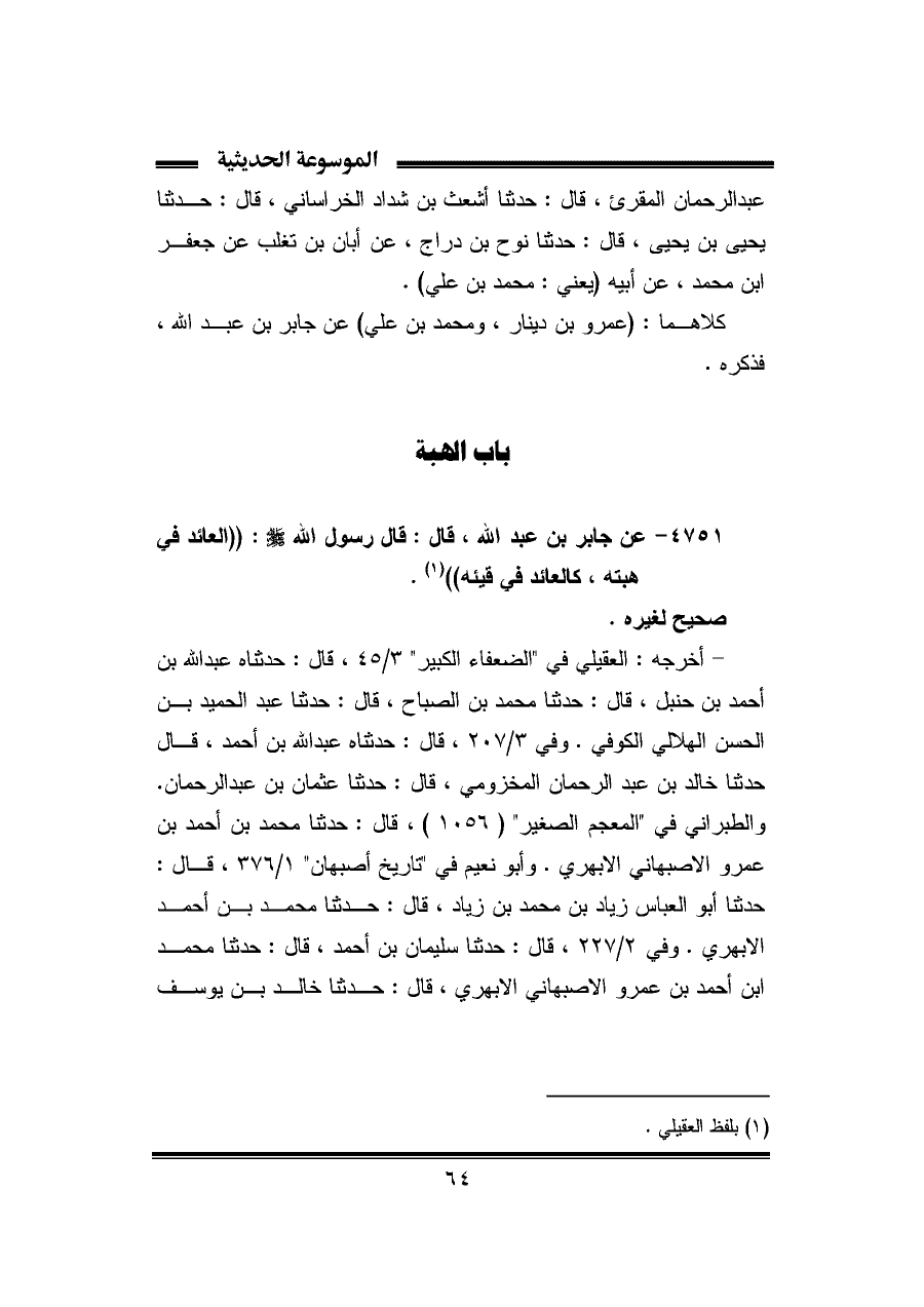 (¬١) بلفظ العقيلي.