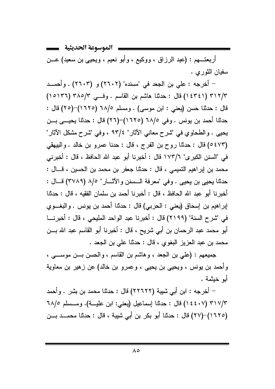 أربعتهم: (عبد الرزاق، ووكيع، وأبو نعيم، ويحيى بن سعيد) عن سفيان الثوري.