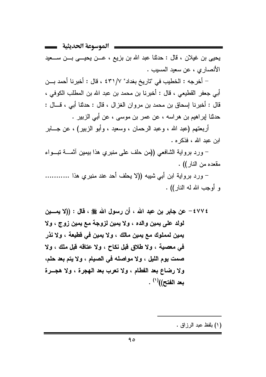 (¬١) بلفظ عبد الرزاق.