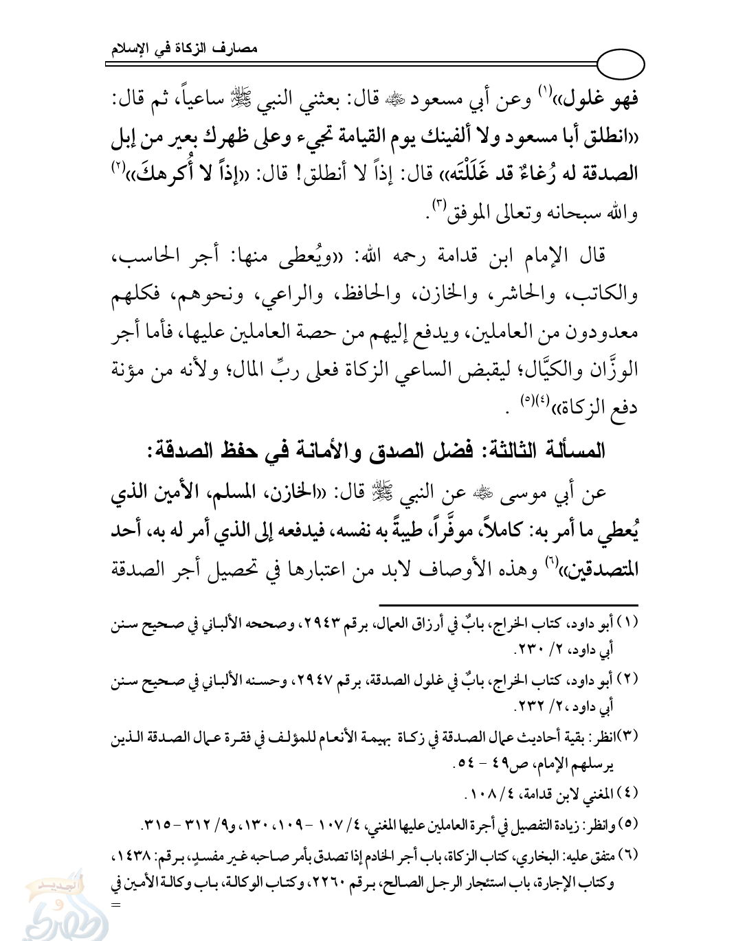 (¬2) أبو داود، كتاب الخراج، بابٌ في غلول الصدقة، برقم 2947، وحسنه الألباني في صحيح سنن أبي داود،2/ 232.