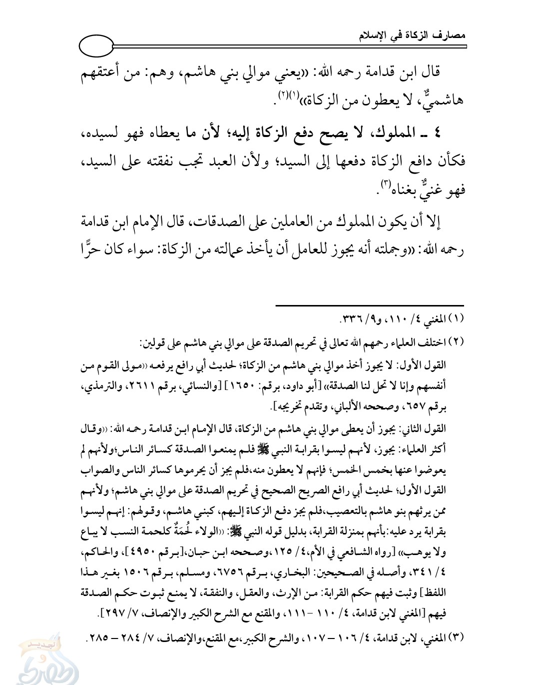 (¬3) المغني، لابن قدامة، 4/ 106 – 107، والشرح الكبير، مع المقنع، والإنصاف، 7/ 284 – 285.