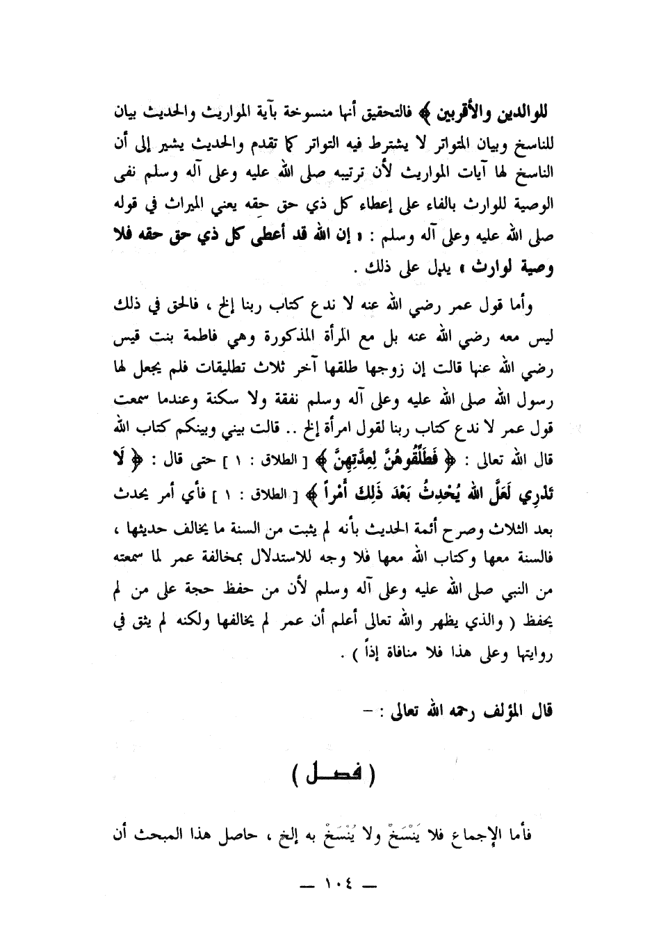 وأما قول عمر رضي الله عنه لا ندع كتاب ربنا الخ، فالحق في ذلك ليس معه رضي الله عنه بل مع المرأة المذكورة وهي فاطمة بنت قيس رضي الله عنها قالت ان زوجها طلقها آخر ثلاث تطليقات فلم يجعل لها رسول الله - صلى الله عليه وسلم - نفقة ولا سكنة وعندما سمعت قول عمر لا ندع كتاب ربنا لقول امرأة الخ..