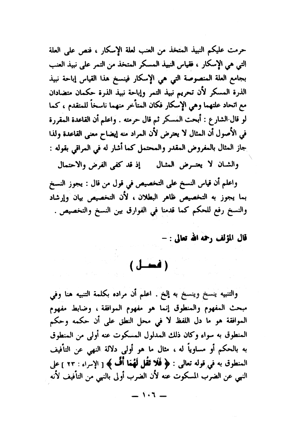 والتنبيه ينسخ وينسخ به الخ. اعلم أن مراده بكلمة التنبيه هنا وفي مبحث المفهوم والمنطوق هو مفهوم الموافقة، وضابط مفهوم الموافقة هو ما دل اللفظ لا في محل النطق على أن حكمه وحكم المنطوق به سواء وكان ذلك المدلول المسكوت عنه أولى من المنطوق به بالحكم أو مساوياً له، مثال ما هو أولى دلالة النهي عن التأفيف المنطوق به في قوله تعالى: " فلا تقل لهما أف" على النهي عن الضرب المسكوت عنه لأن الضرب أولى بالنهي من التأفيف لأنه
