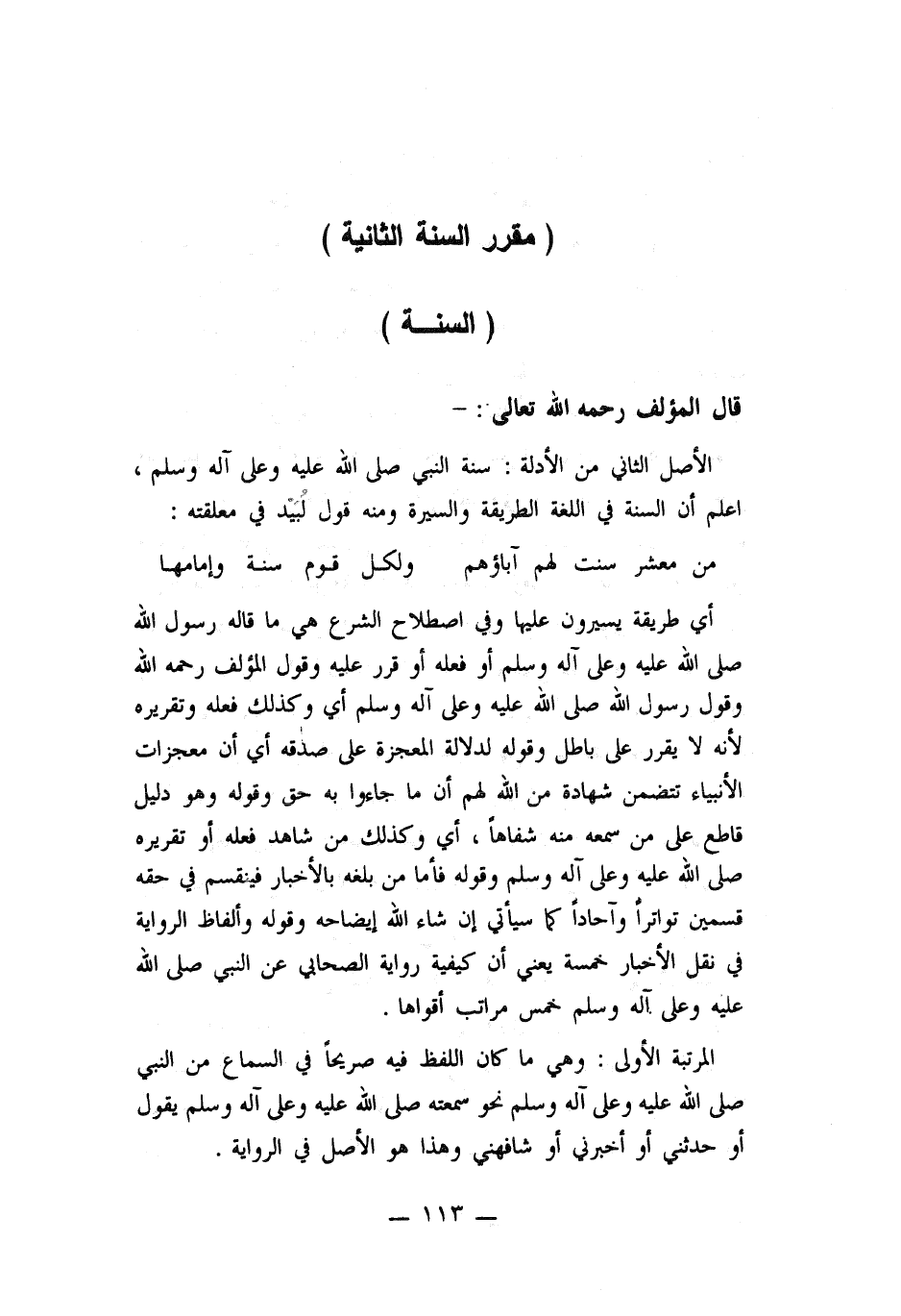 الأصل الثاني من الأدلة سنة النبي - صلى الله عليه وسلم -، اعلم أن السنة في اللغة الطريقة والسيرة ومنه قول لبيد في معلقته: