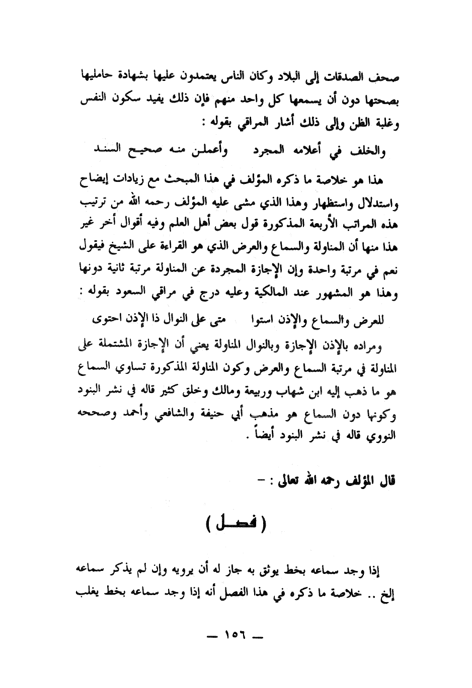 إذا وجد سماعة بخط يوثق به جاز له أن يرويه وان لم يذكر سماعه الخ ... خلاصة ما ذكره في هذا الفصل أنه إذا وجد سماعه بخط يغلب