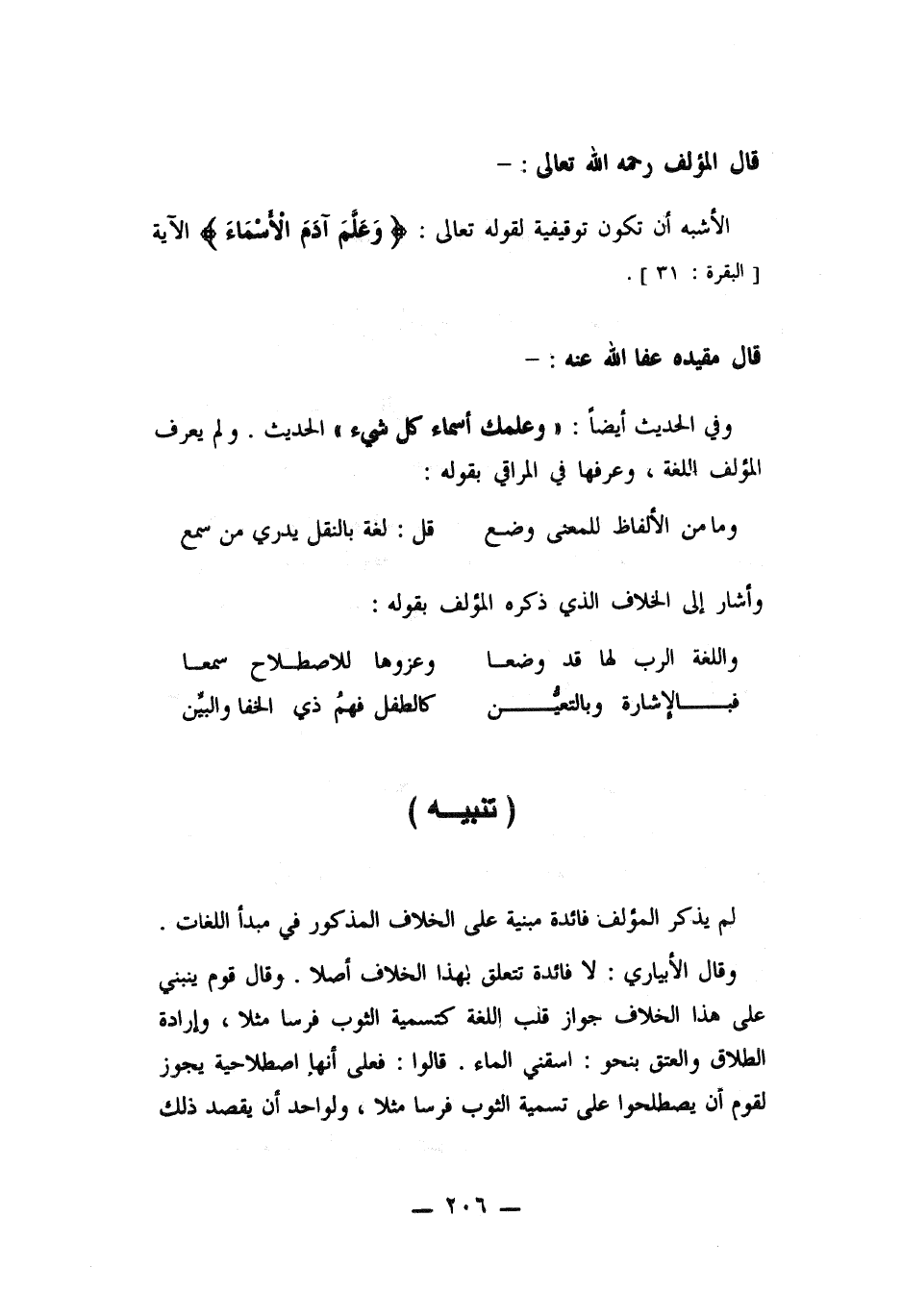 وفي الحديث أيضاً: (وعلمك أسماء كل شئ) الحديث. ولم يعرف المؤلف اللغة , وعرفها في المراقي بقوله: