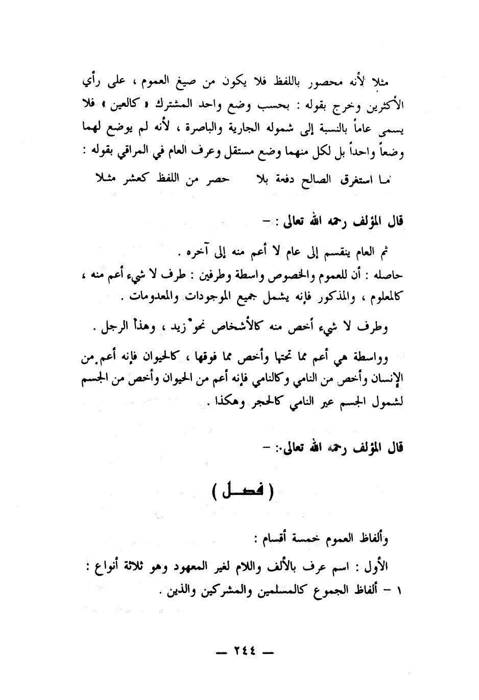 ثم العام ينقسم إلى عام لا أعم منه إلى آخره.