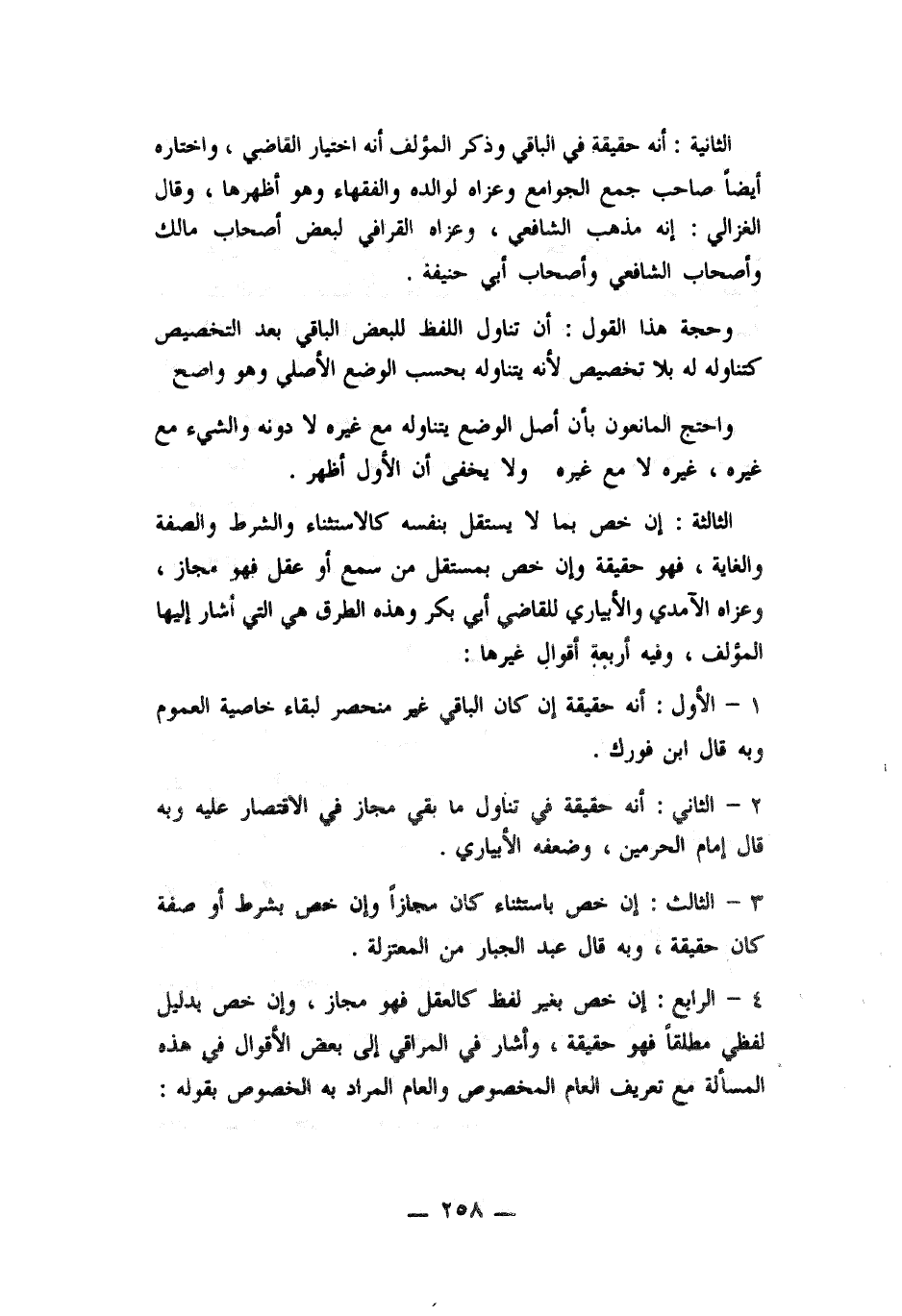 1- الأول: أنه حقيقة ان كان الباقي غير منحصر لبقاء خاصية العموم وبه قال ابن فورك.