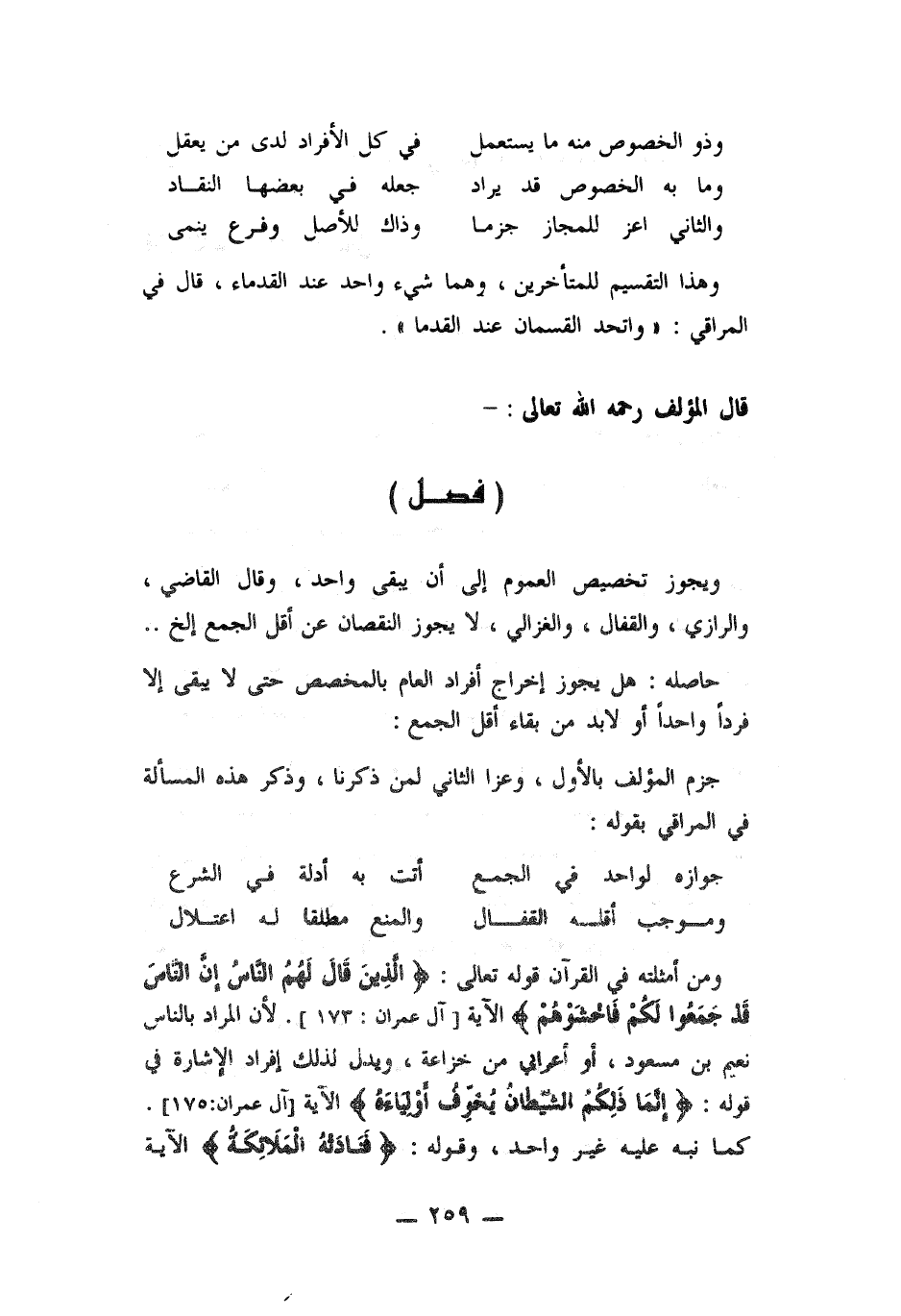 ويجوز تخصيص العموم إلى أن يبقى واحد , وقال القاضي , والرازي , والقفال , والغزالي , لا يجوز النقصان عن أقل الجمع الخ ...