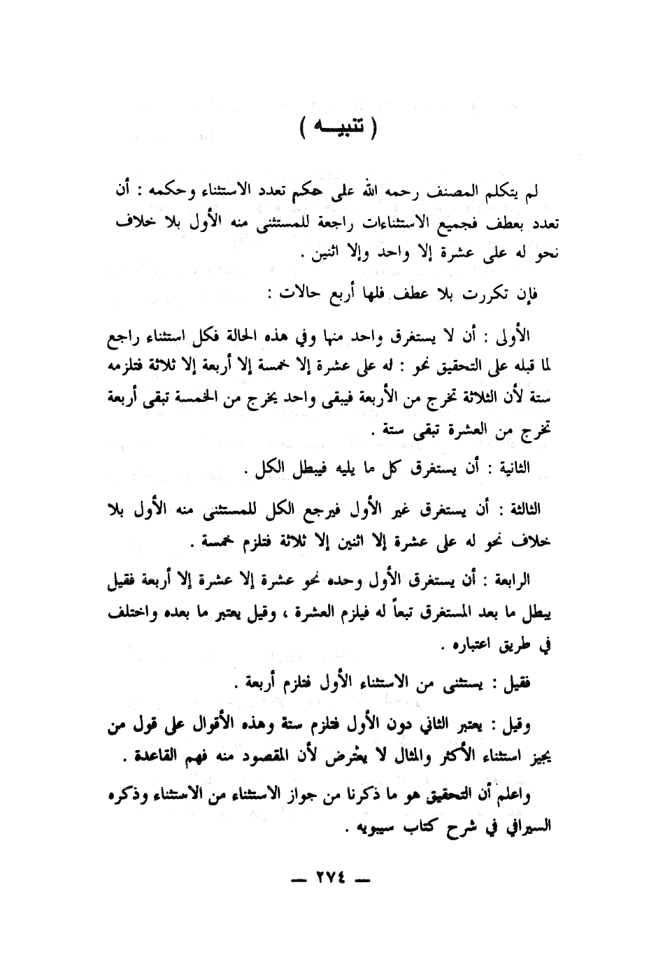 واعلم أن التحقيق هو ما ذكرنا من جواز الاستثناء من الاستثناء وذكره السيرافي في شرح كتاب سيبويه.