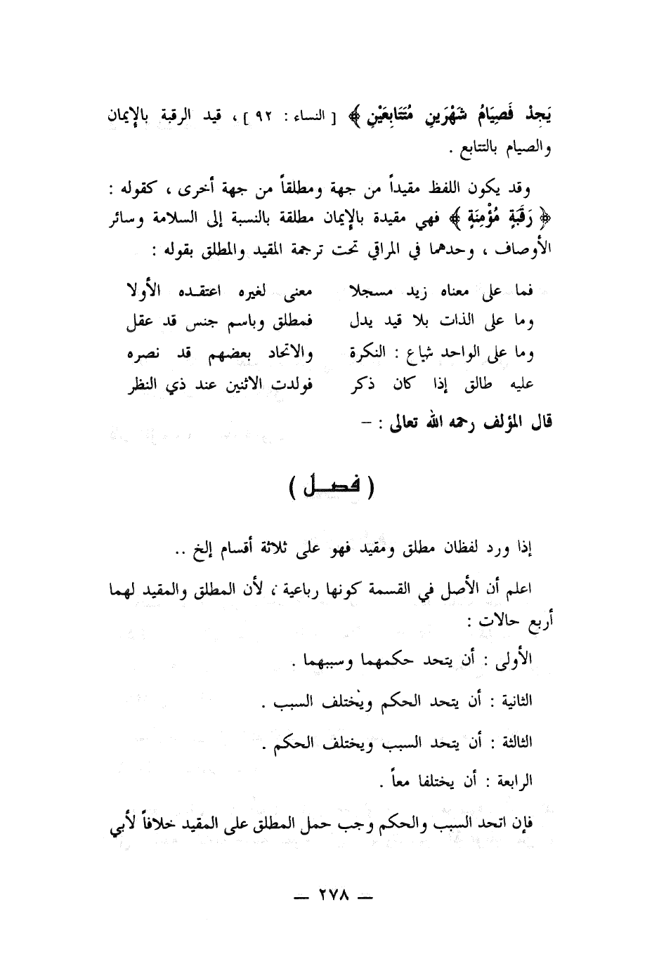 إذا ورد لفظان مطلق ومقيد فهو على ثلاثة أقسام الخ ...