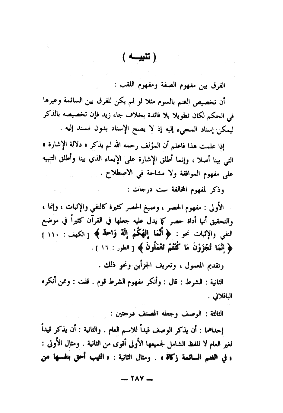 إذا علمت هذا فاعلم أن المؤلف رحمه الله لم يذكر ((دلالة الإشارة)) التى بينا أصلا , وانما أطلق الإشارة على الإيمان الذي بينا وأطلق التنبيه على مفهوم الموافقة ولا مشاحة من الاصطلاح. ط