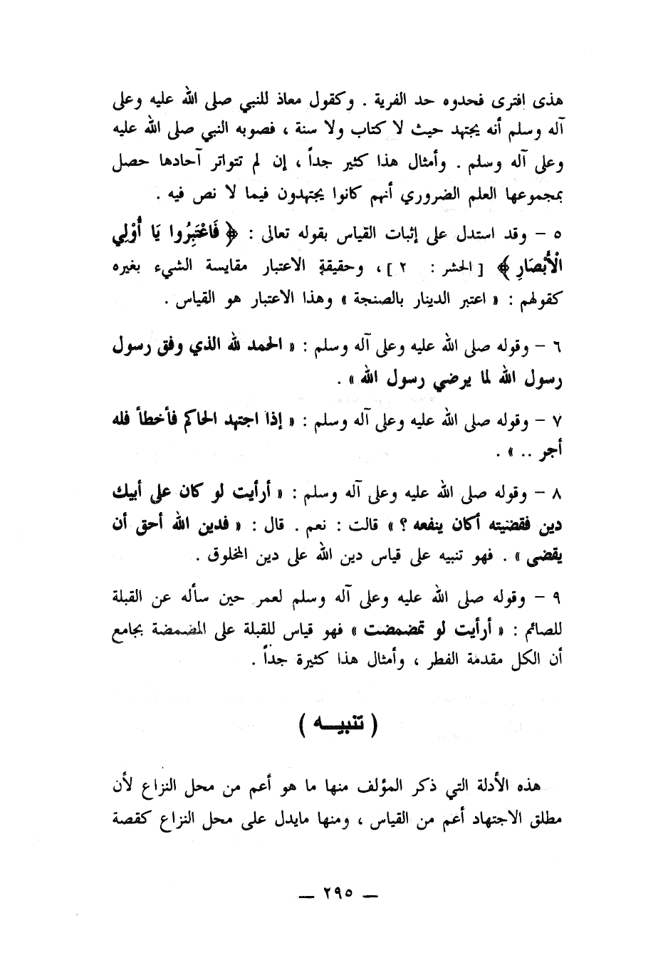 5- وقد استدل على اثبات القياس بقوله تعالى: " فاعبروا يا أولي الأبصار "، وحقيقة الاعتبار مقايسة الشيء بغيره كقولهم: (اعتبر الدينار بالصنجة) وهذا الاعتبار هو القياس.