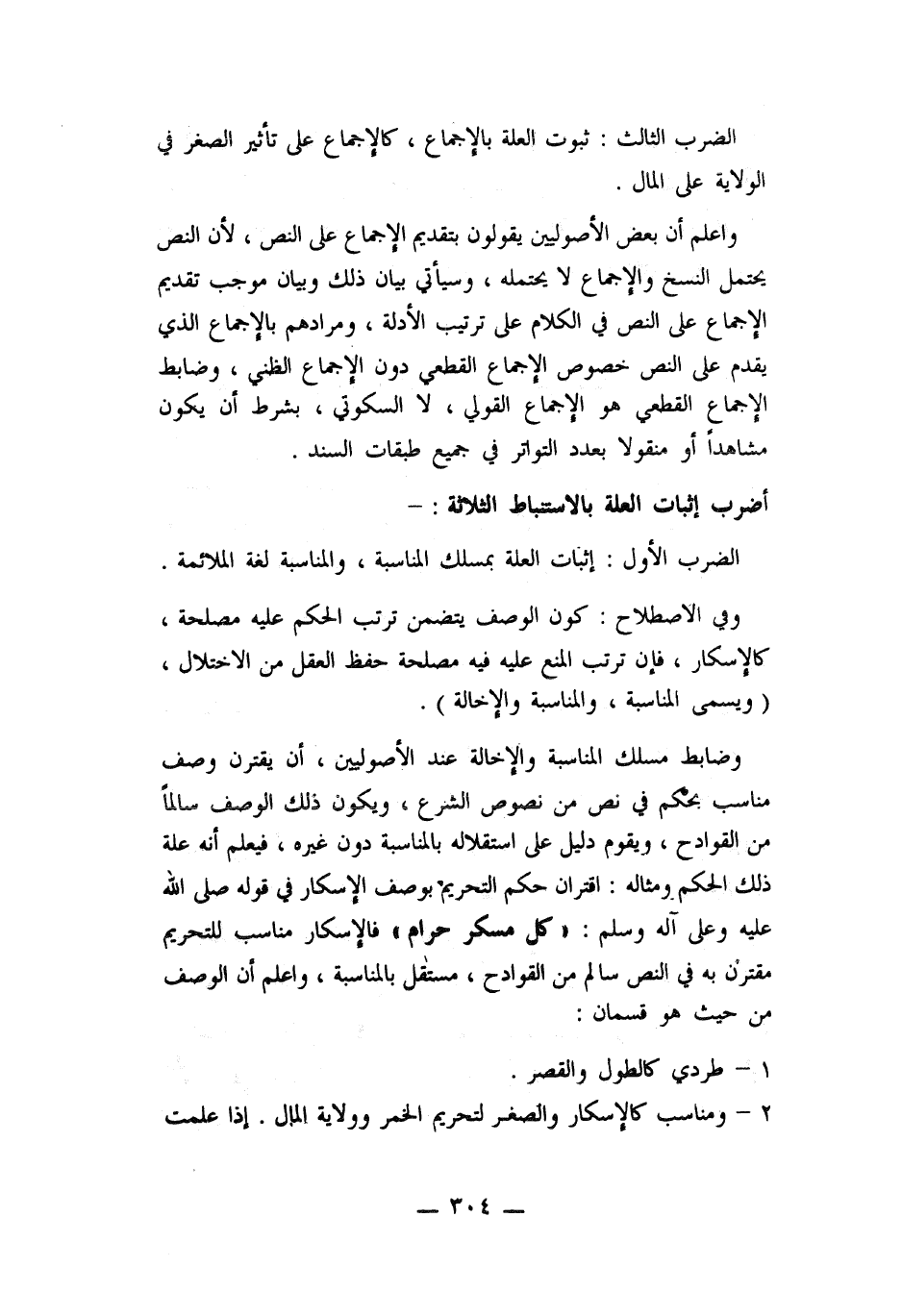الضرب الثالث: ثبوت العلة بالاجماع، كالاجماع على تأثير الصغر في الولاية على المال.
