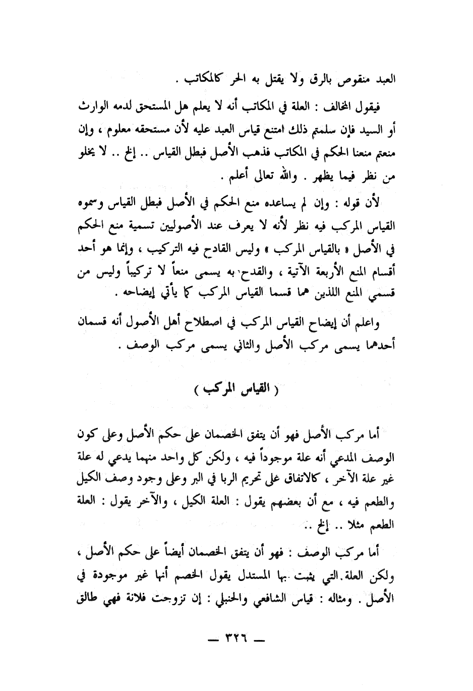 واعلم ان ايضاح القياس المركب في اصطلاح أهل الأصول أنه قسمان أحدهما يسمى مركب الأصل والثاني يسمى مركب الوصف.