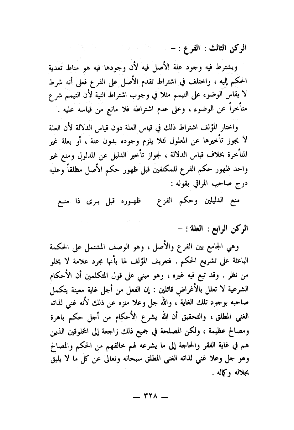 وهي الجامع بين الفرع والأصل، وهو الوصف المشتمل على الحكمة الباعثة على تشريع الحكم. فتعريف المؤلف لها بأنها مجرد علامة لا يخلو من نظر. وقد تبع فيه غيره، وهو مبني على قول المتكلمين أن الأحكام الشرعية لا تعلل بالأغراض قائلين: أن الفعل من أجل غاية معينة يتكمل صاحبه بوجود تلك الغاية، والله جل وعلا منزه عن ذلك لأنه غني لذاته الغني المطلق، والتحقيق أن الله يشرع الأحكام من أجل حكم