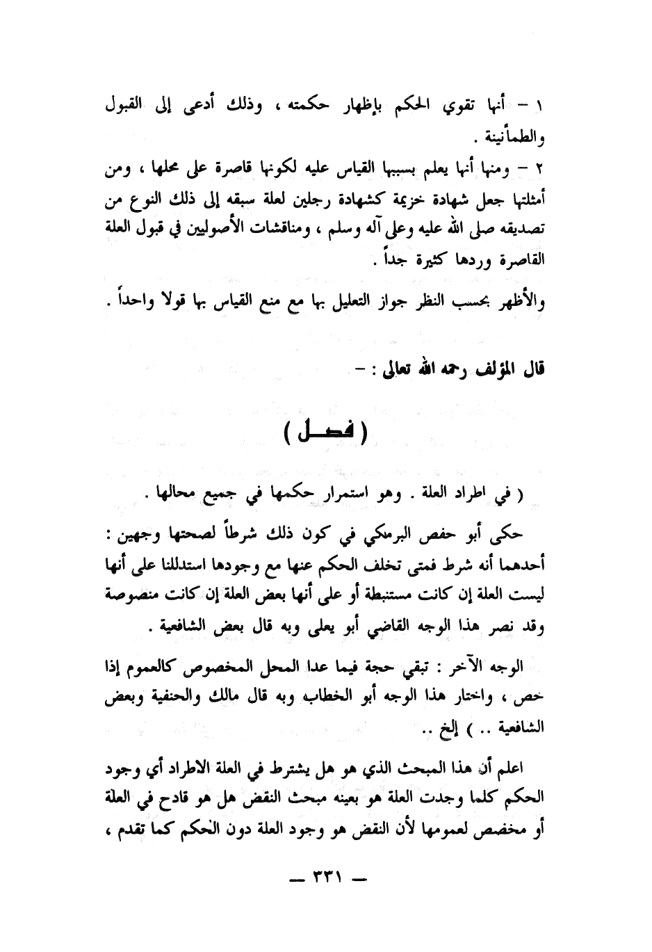 حكى أبو حفص البرمكي في كون ذلك شرطاً لصحتها وجهين: أحدهما أنه شرط فمتى تخلف الحكم عنها مع وجودها استدللنا على أنها ليست العلة إن كانت مستنبطة أو على أنها بعض العلة أن كانت منصوصة وقد نصر هذا الوجه القاضي أبو يعلى وبه قال بعض الشافعية.
