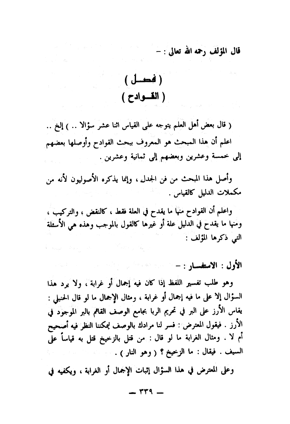 قال بعض أهل العلم يتوجه على القياس اثنا عشر سؤالا. . الخ. .