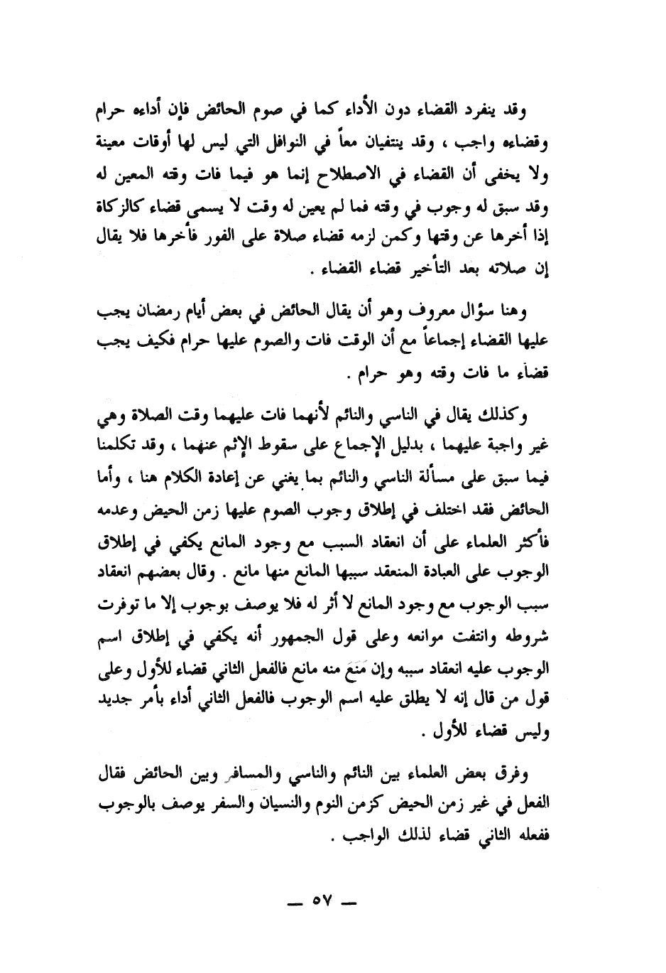 وفرق بعض العلماء بين النائم والناسي والمسافر وبين الحائض فقال الفعل في غير زمن الحيض كزمن النوم والنسيان والسفر يوصف بالوجوب ففعله الثاني قضاء لذلك الواجب.