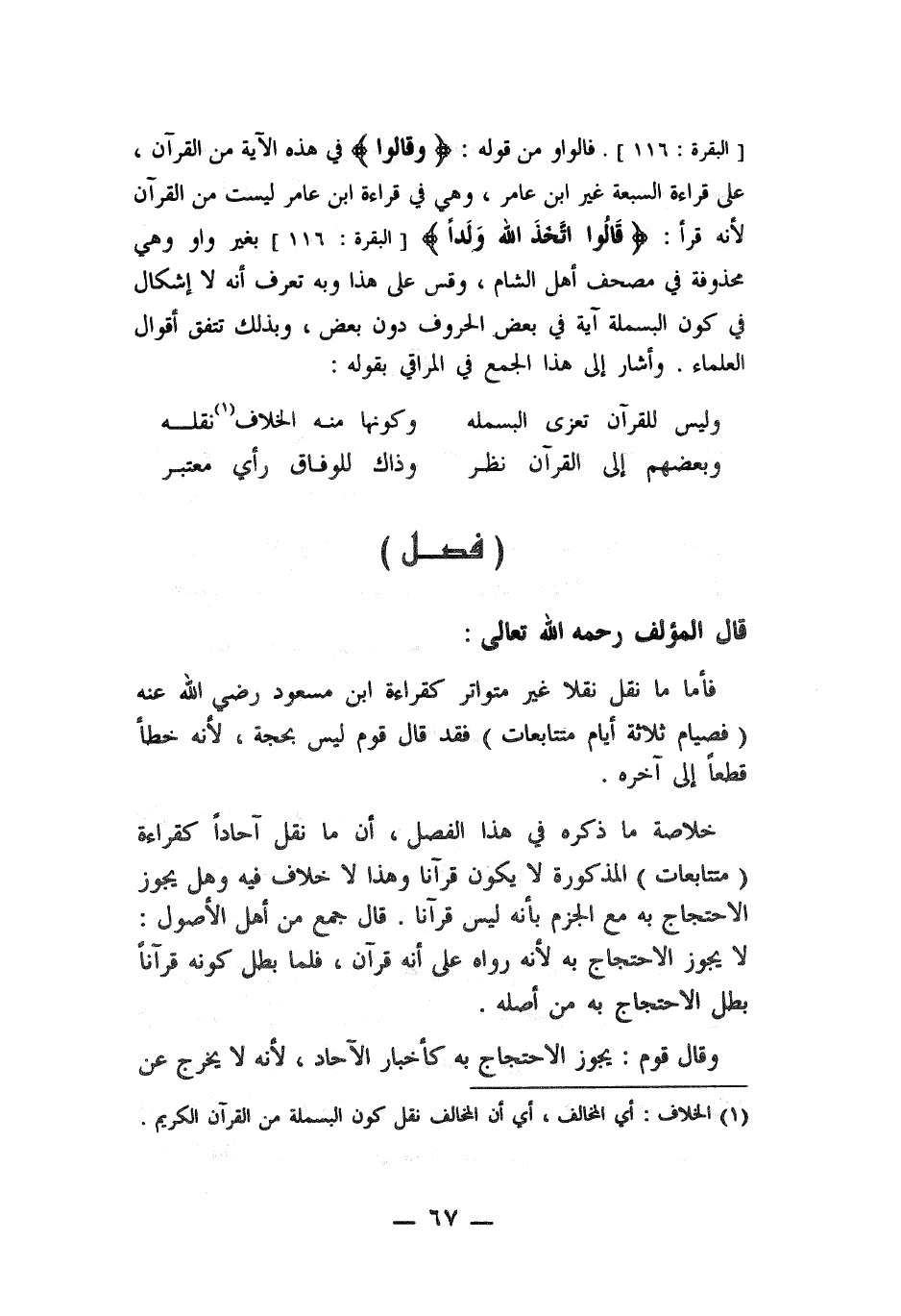 (¬1) الخلاف: أي المخالف، أي أن المخالف نقل كون البسملة من القرآن الكريم.