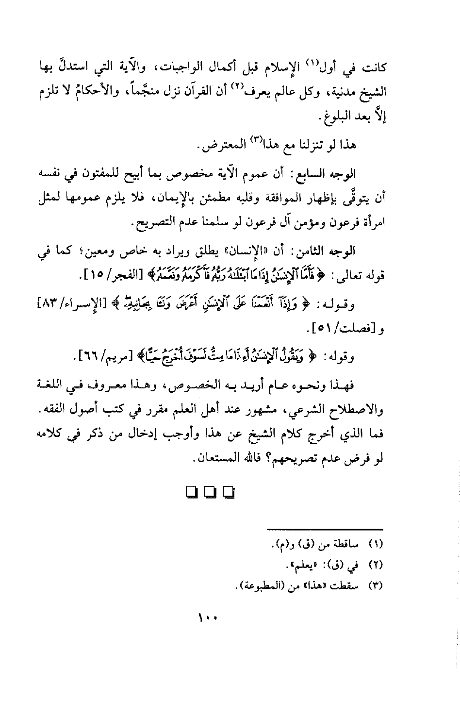 الوجه الثامن: أن "الإنسان " يطلق ويراد به خاص ومعين؛ كما في قوله تعالى: {فَأَمَّا الْإِنْسَانُ إِذَا مَا ابْتَلَاهُ رَبُّهُ فَأَكْرَمَهُ وَنَعَّمَهُ} [الفجر: 15] [الفجر / 15] .