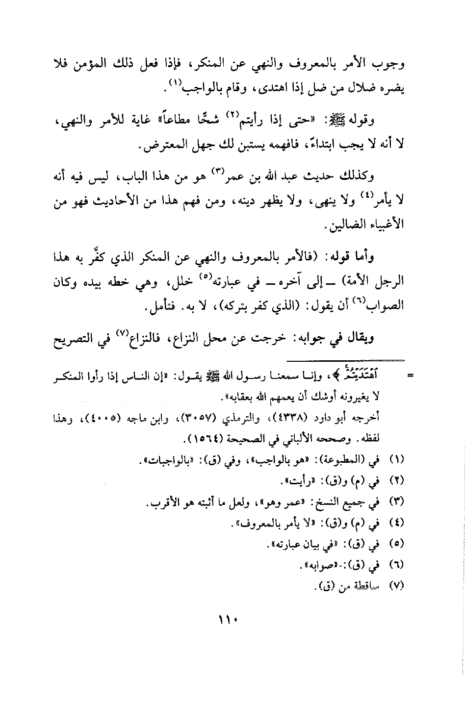 وأما قوله: (فالأمر بالمعروف والنهي عن المنكر الذي كفَّر به هذا الرجل الأمة) - إلى آخره- في عبارته (¬5) . خلل، وهي خطه بيده وكان الصواب (¬6) . أن يقول: (الذي كفر بتركه) ، لا به. فتأمل.