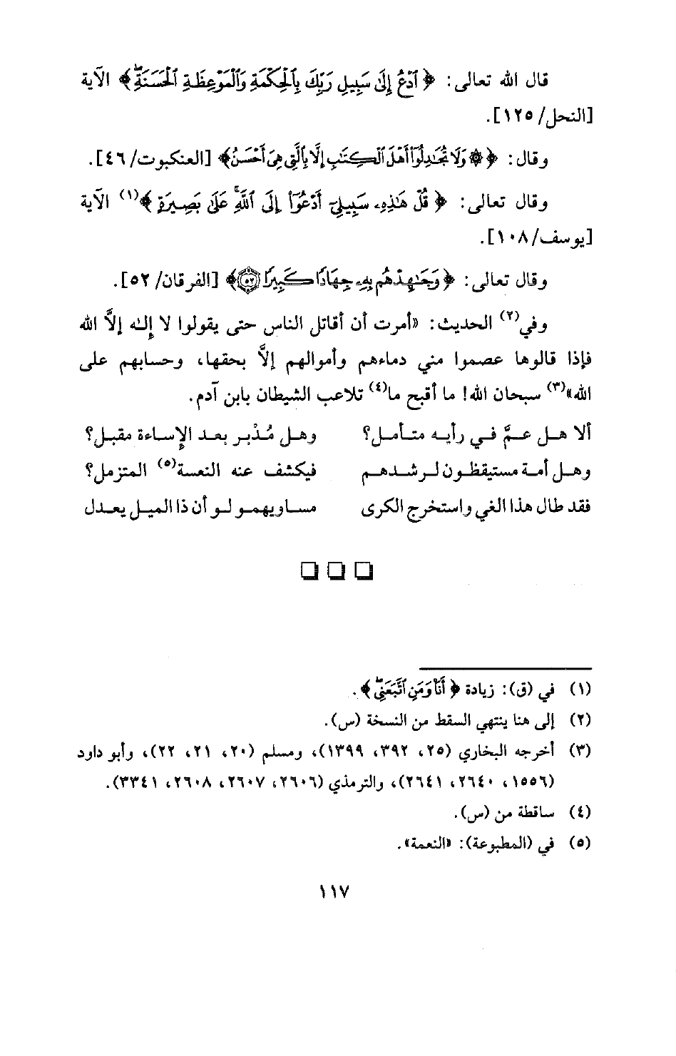 قال الله تعالى: {ادْعُ إِلَى سَبِيلِ رَبِّكَ بِالْحِكْمَةِ وَالْمَوْعِظَةِ الْحَسَنَةِ} [النحل: 125] الآية [النحل / 125] .